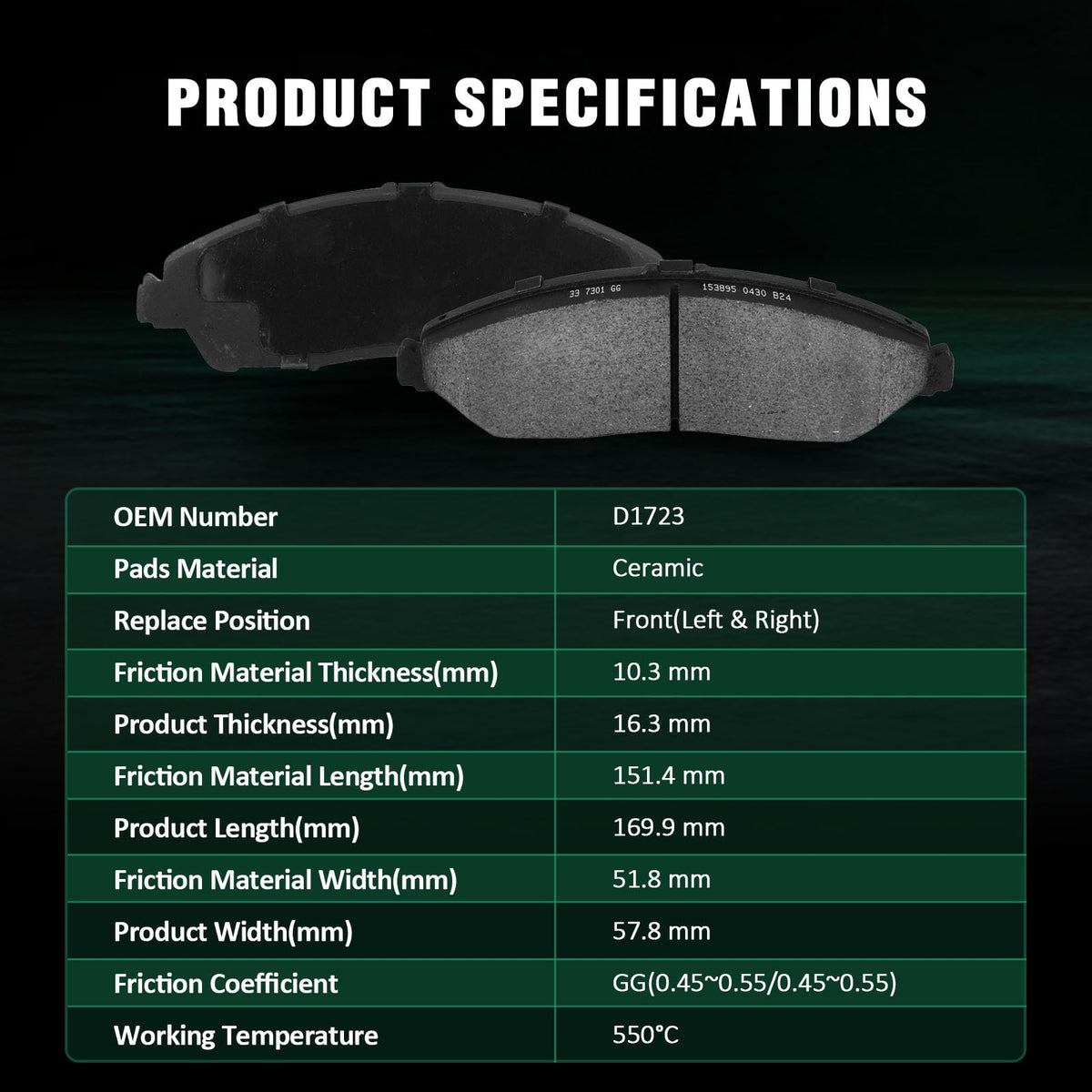 Automuto 4Pcs Front Ceramic Disc Brake Pads Set D1723 For Acura Mdx 2014-2020,For Honda Pilot 2016-2022,For Honda Ridgeline 2017