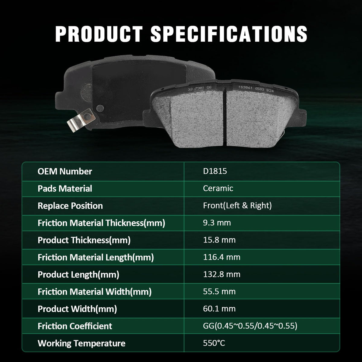 Automuto 4Pcs Front Ceramic Disc Brake Pads Set D1815 For Hyundai Santa Fe Sport 2017-2018,For Kia Sorento 2016-2020
