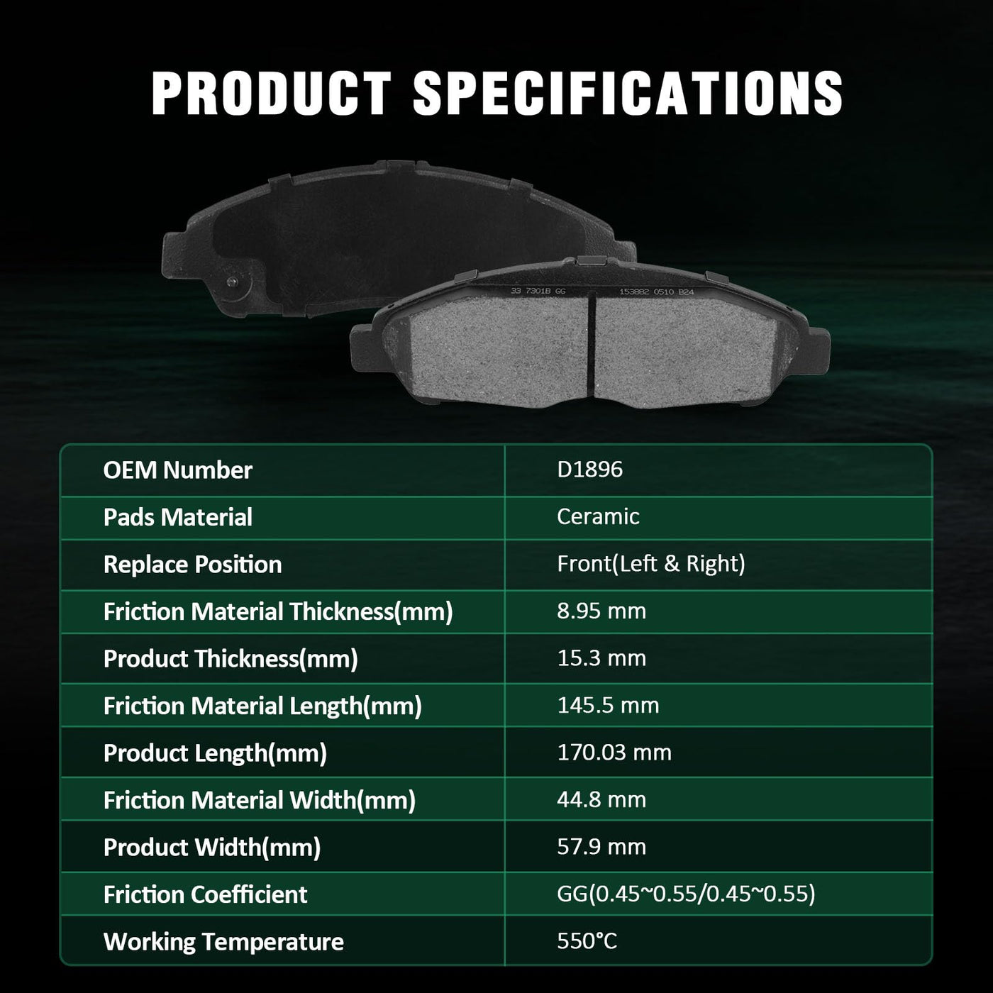 Automuto 4Pcs Front Ceramic Disc Brake Pads Set D1896 For Buick Enclave 18-20,For Cadillac Xt5 17-20,For Cadillac Xt6 20,For Che