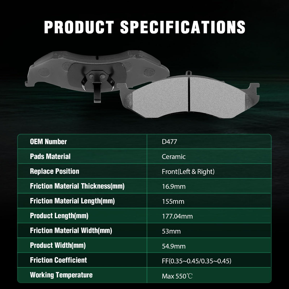 Automuto 4Pcs Front Ceramic Disc Brake Pads Set D477 For Jeep Cherokee Comanche Grand Cherokee Grand Wagoneer Tj Wagoneer Wrangl