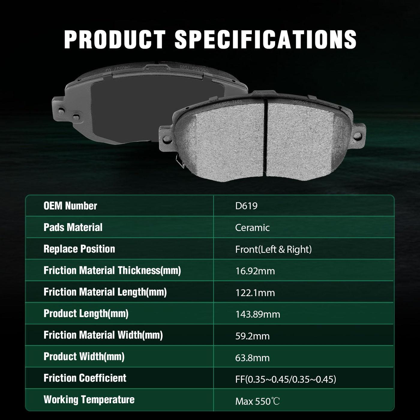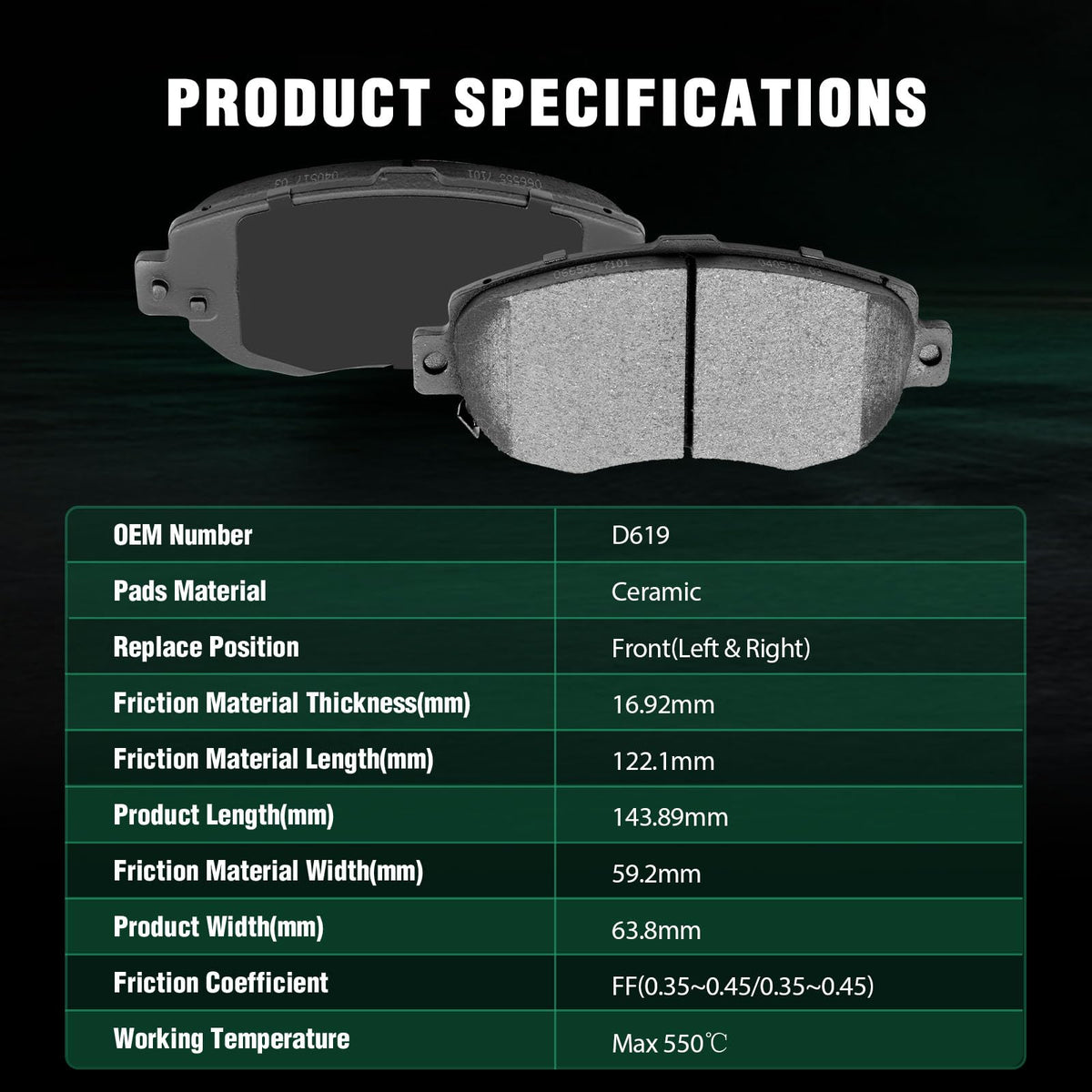 Automuto 4Pcs Front Ceramic Disc Brake Pads Set D619 For Lexus Gs300 Gs400 Gs430 Is300 Sc430 For Toyota For Supra