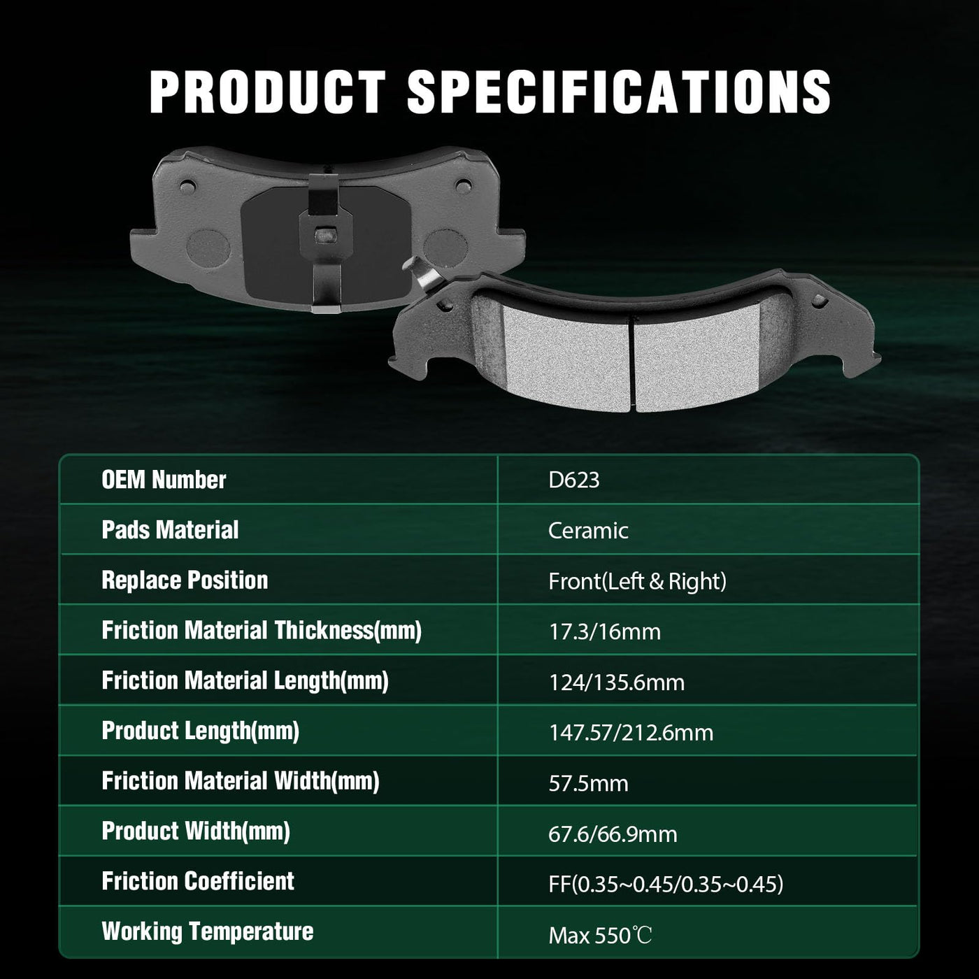 Automuto 4Pcs Front Ceramic Disc Brake Pads Set D623 For Buick Lesabre Park Avenue Riviera For Cadillac Deville Eldorado Seville