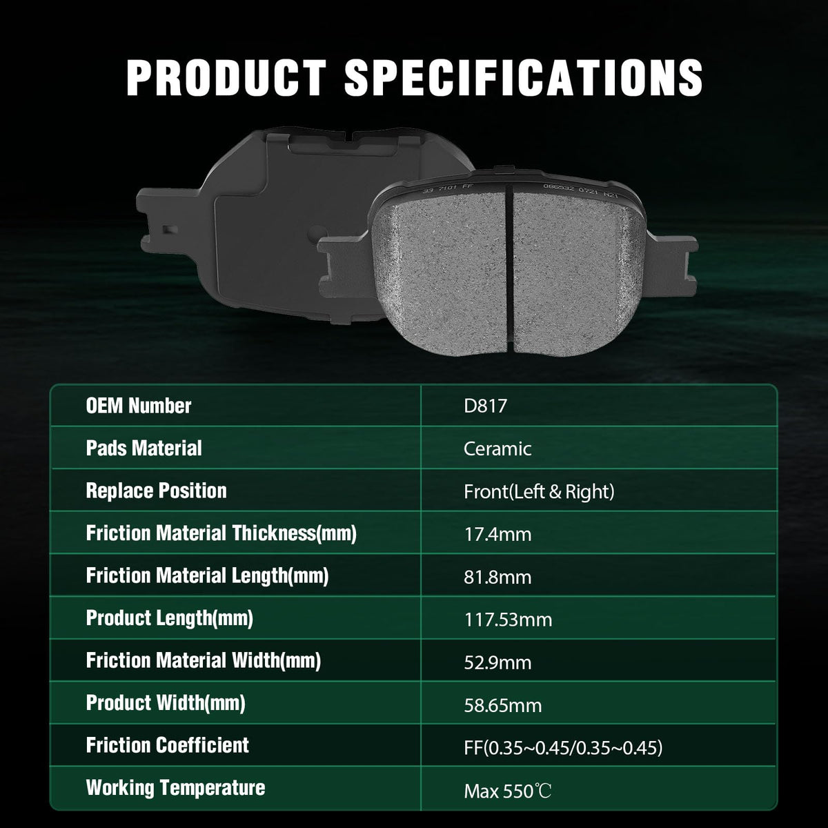 Automuto 4Pcs Front Ceramic Disc Brake Pads Set D817 For Scion Tc 2010,For Toyota Celica 2000-2005