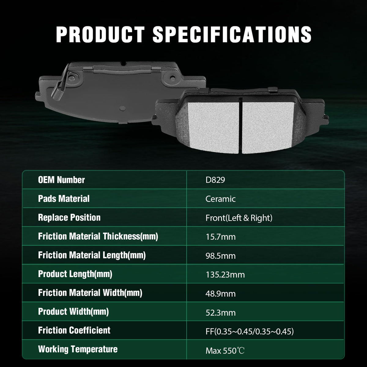Fits:2007-2010 For Acura CSX 2.0L2002-2006 For Acura RSX 2.0L2006-2011 For Honda Civic 2.0L2000-2003 For Honda S2000 2.0L2004-2009 For Honda S2000 2.2LSpecifications:1)Placement on Vehicle: Front Left and Right2)Brake Pad Material: Ceramic3)OEM Part Numbers: ATD829C,D829-7702Package Including:4*Ceramic Disc Brake Pads Set