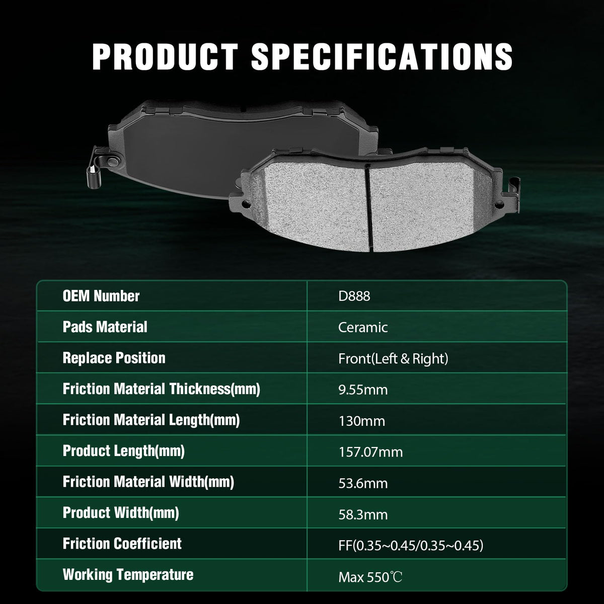 Automuto 4Pcs Front Ceramic Disc Brake Pads Set D888 For Nissan 350Z 2006-2009, 370Z 2009-2018, Murano 2011-2014, Pathfinder 200