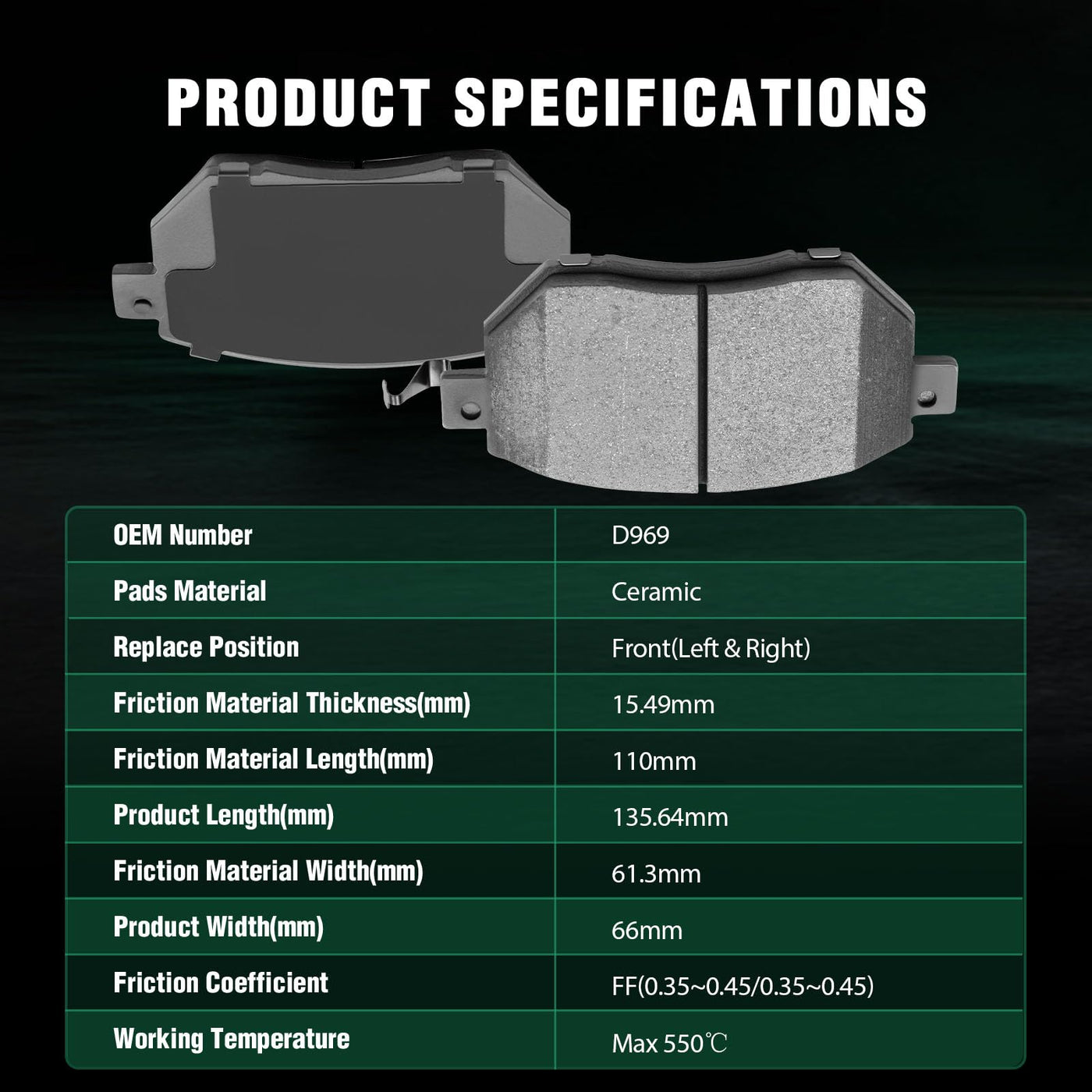 Automuto 4Pcs Front Ceramic Disc Brake Pads Set D969 - For Altima, Maxima, Murano 2003-2012