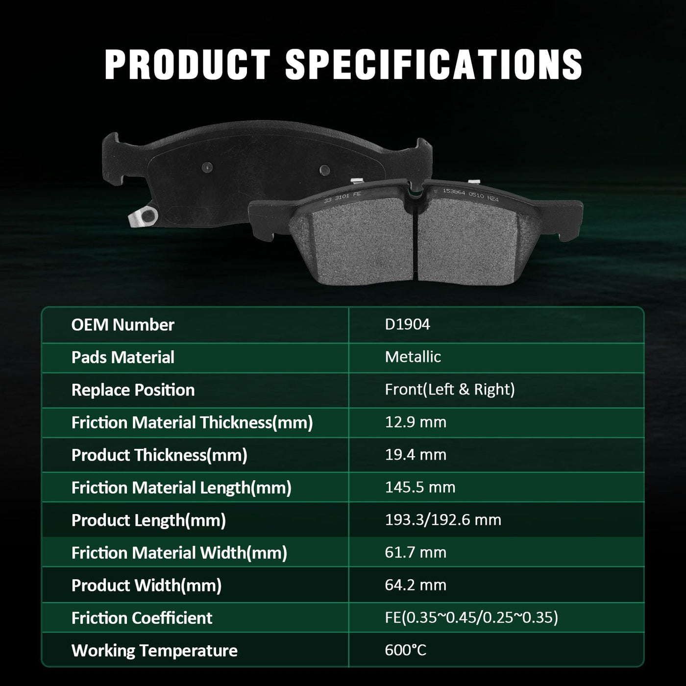 Automuto 4Pcs Front Metallic Disc Brake Pads Set D1904 For Mercedes-Benz Gl350 2013-2016, Gl450 2013-2016, Gle400 2018, Gls450 2