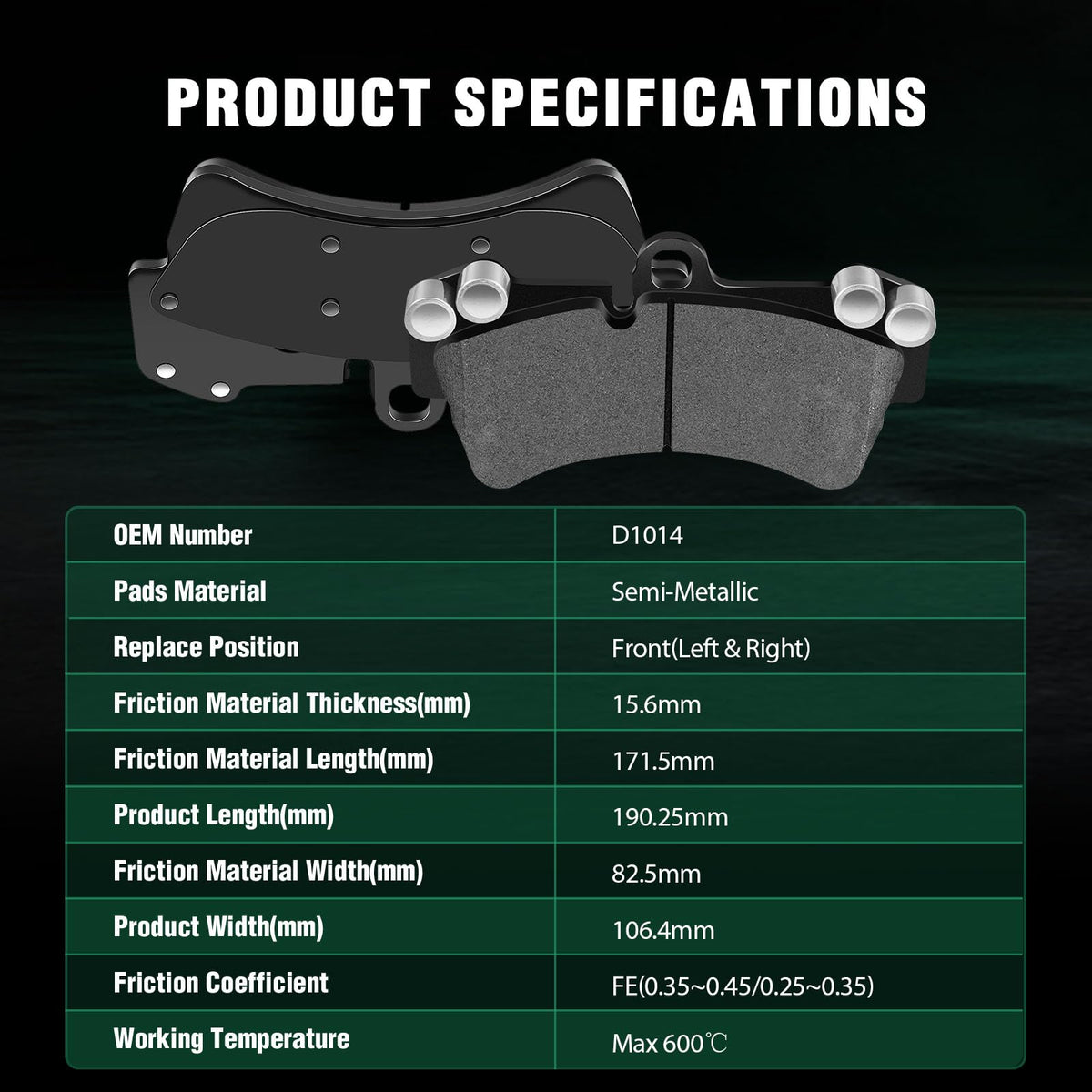Automuto 4Pcs Front Semi-Metallic Disc Brake Pads Set D1014 For Audi Q7 2007-2015,For Porsche Cayenne 2003-2006 2008-2010,For Vo
