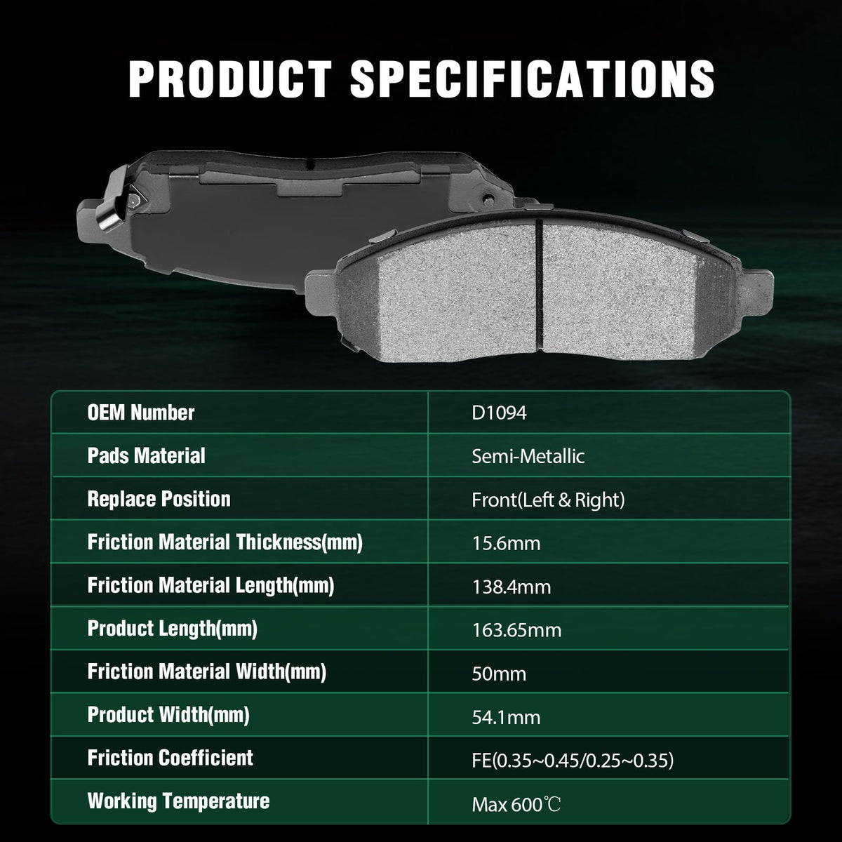 Automuto 4Pcs Front Semi-Metallic Disc Brake Pads Set D1094 For Nissan Frontier 2005-2019, Pathfinder 2005-2012, Xterra 2005-201