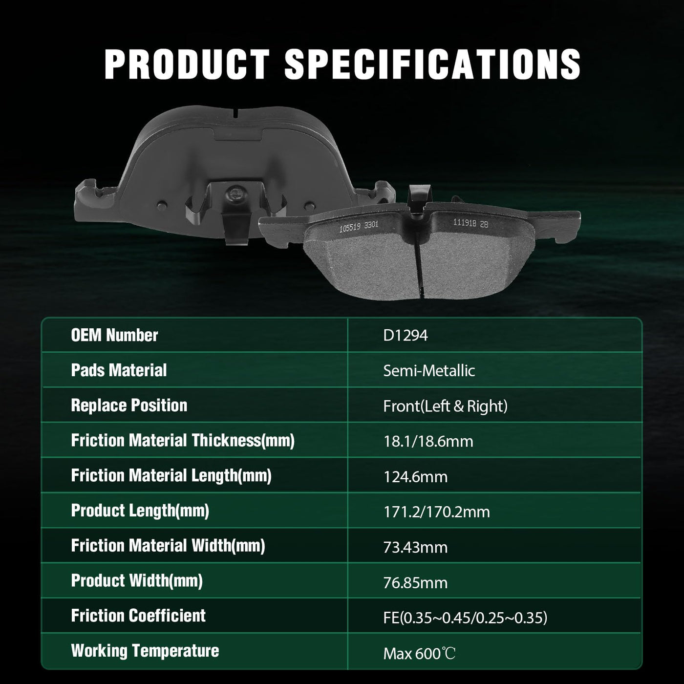 Automuto 4Pcs Front Semi-Metallic Disc Brake Pads Set D1294 For Bmw X4 2016-2017, X5 2007-2017, X6 2008-2017