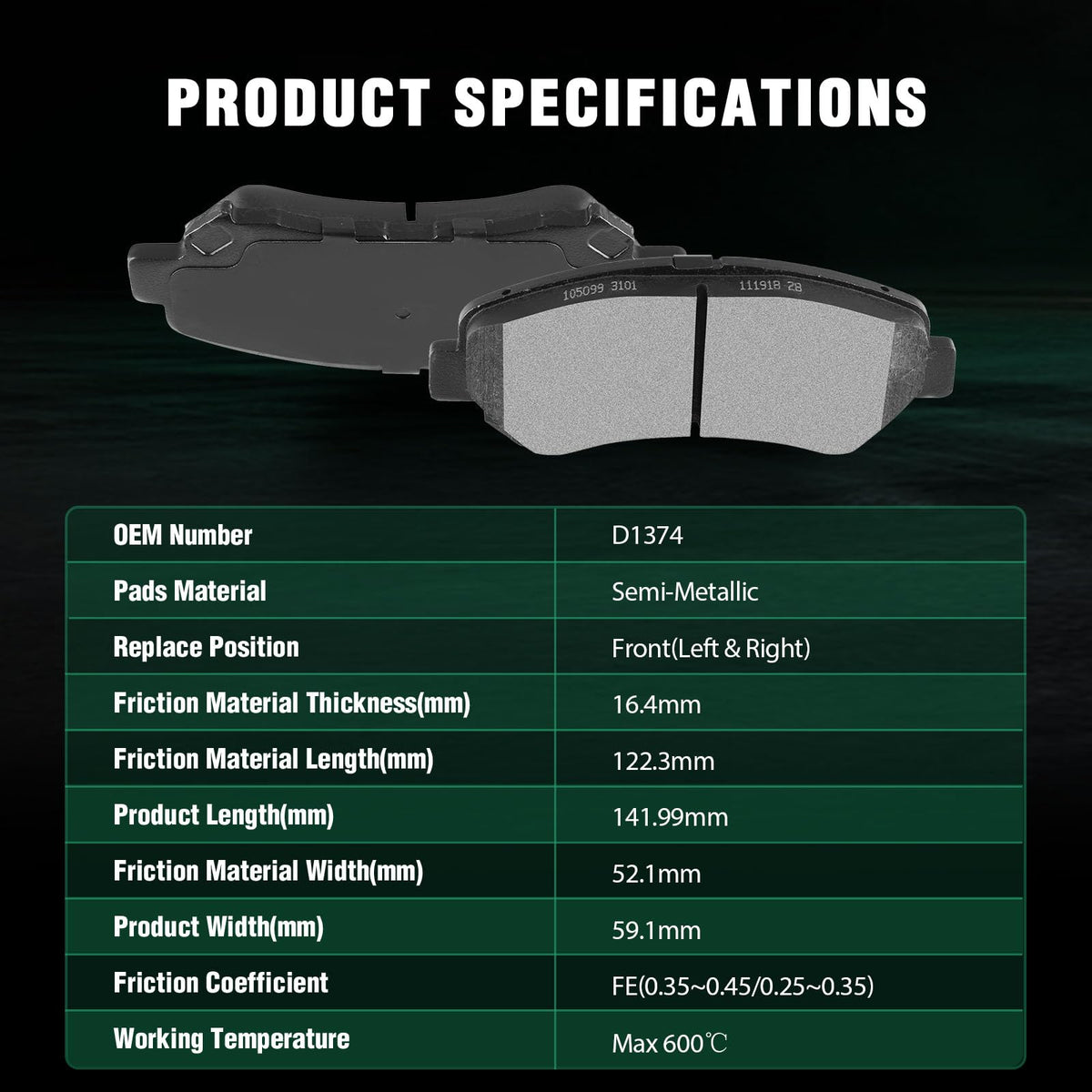Automuto 4Pcs Front Semi-Metallic Disc Brake Pads Set D1374 For Lexus Rx330 2004-2006,For Lexus Rx350 2007-2009,For Toyota For H