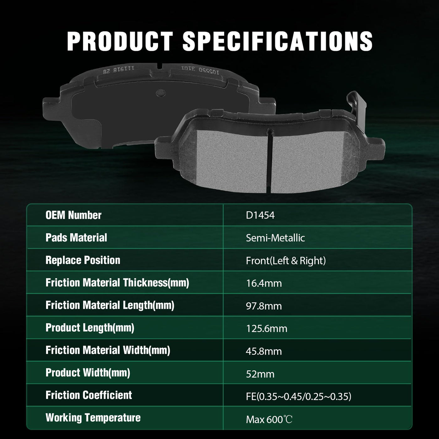 Fits:2014-2017 For Ford For Fiesta 1.0L2011-2019 For Ford For Fiesta 1.6LSpecifications:1)Placement on Vehicle: Front Left and Right2)Brake Pad Material: Semi-Metallic3)OEM Part Numbers: D1454-8653Package Including:4*Semi-Metallic Disc Brake Pads Set