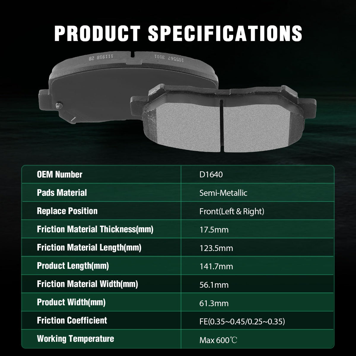 Automuto 4Pcs Front Semi-Metallic Disc Brake Pads Set D1640 For Chrysler 200 2015-2016,For Dodge Dart 2013-2016,For Jeep For Che