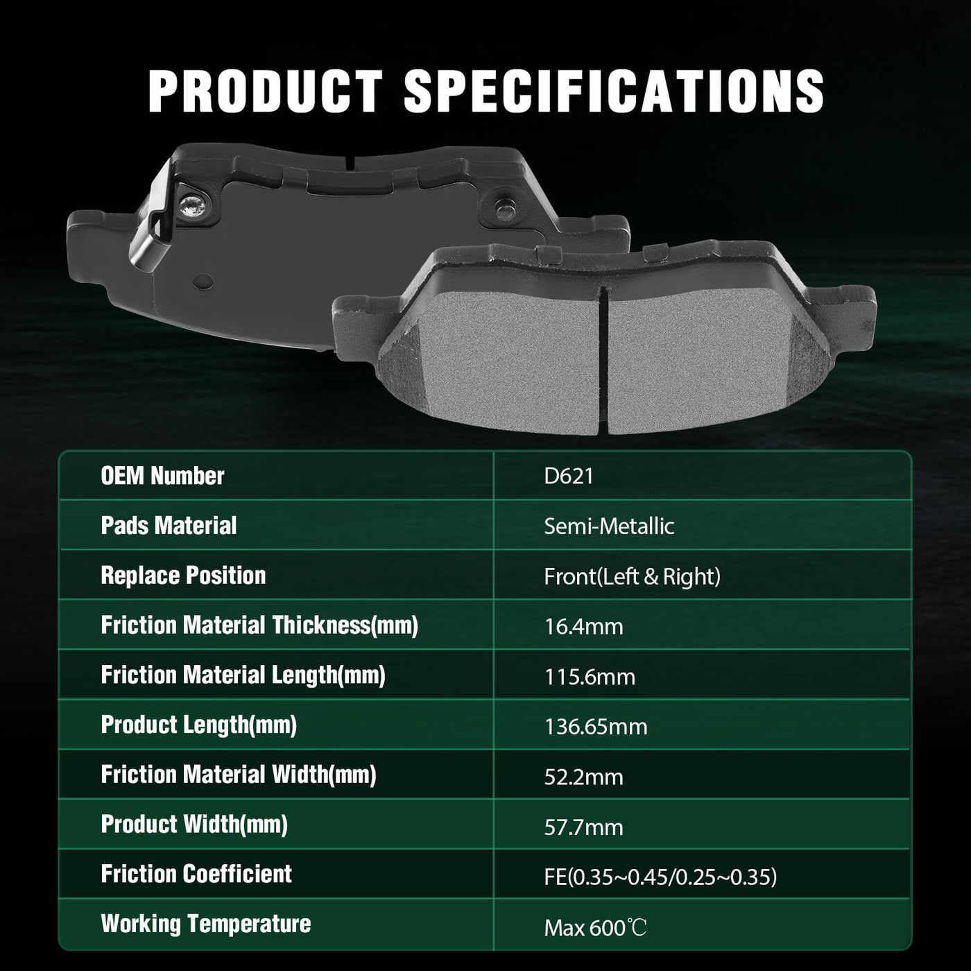 Automuto 4Pcs Front Semi-Metallic Disc Brake Pads Set D621 For Acura Rsx 2002-2006,For Honda Civic 1993-1995 200-2005,For Honda