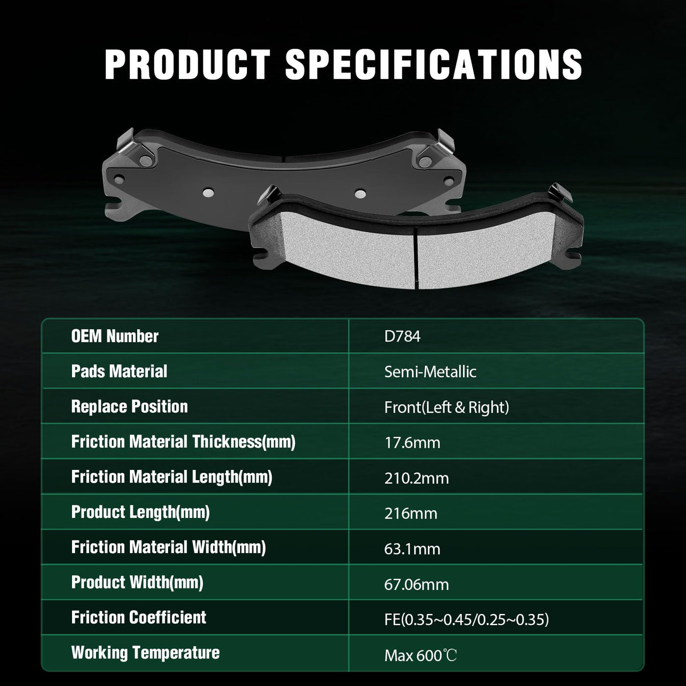 Automuto 4Pcs Front Semi-Metallic Disc Brake Pads Set D784 For Gmc Savana 3500, 4500, Sierra 1500, 2500, Hummer H2