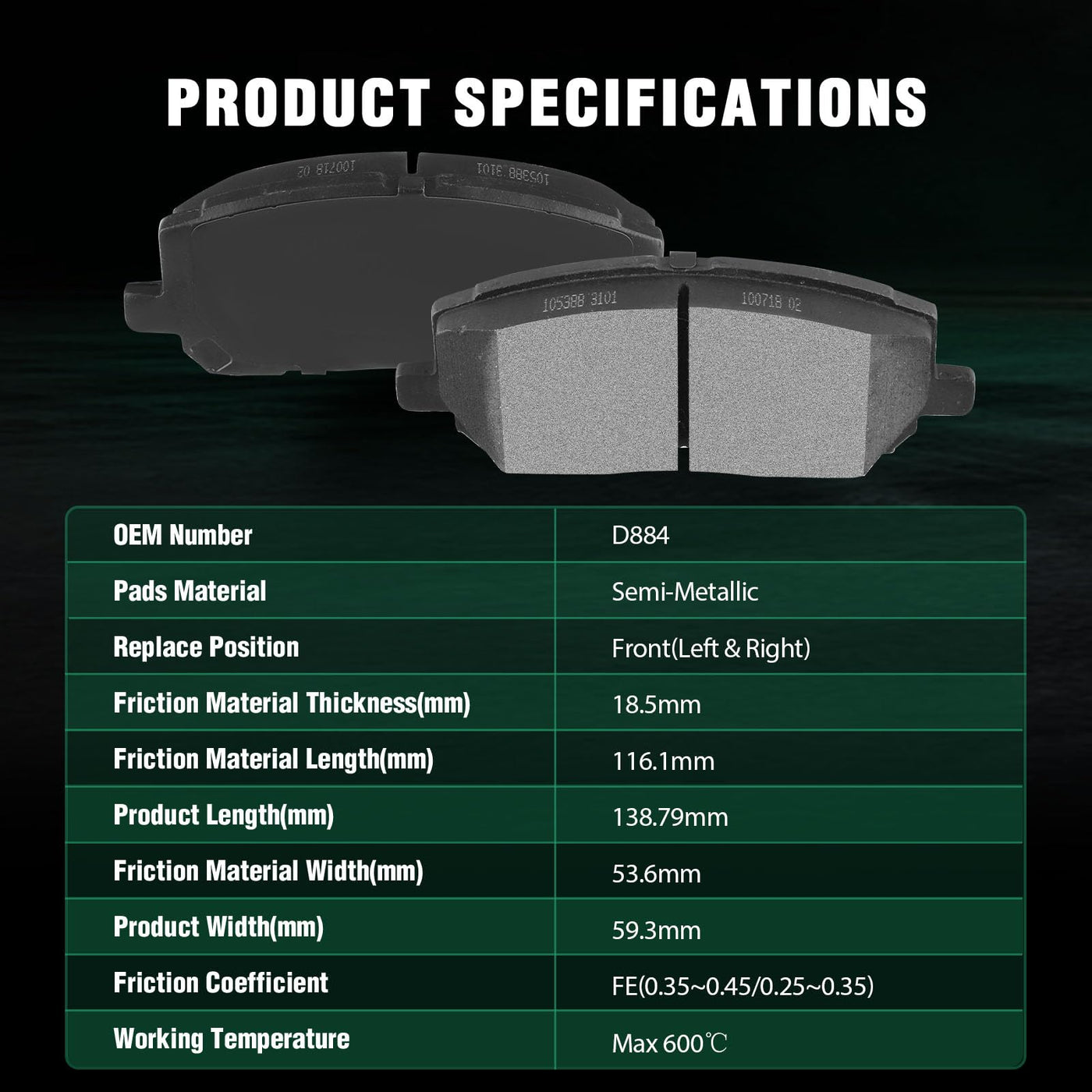 Automuto 4Pcs Front Semi-Metallic Disc Brake Pads Set D884 For Toyota For Highlander 2001-2007