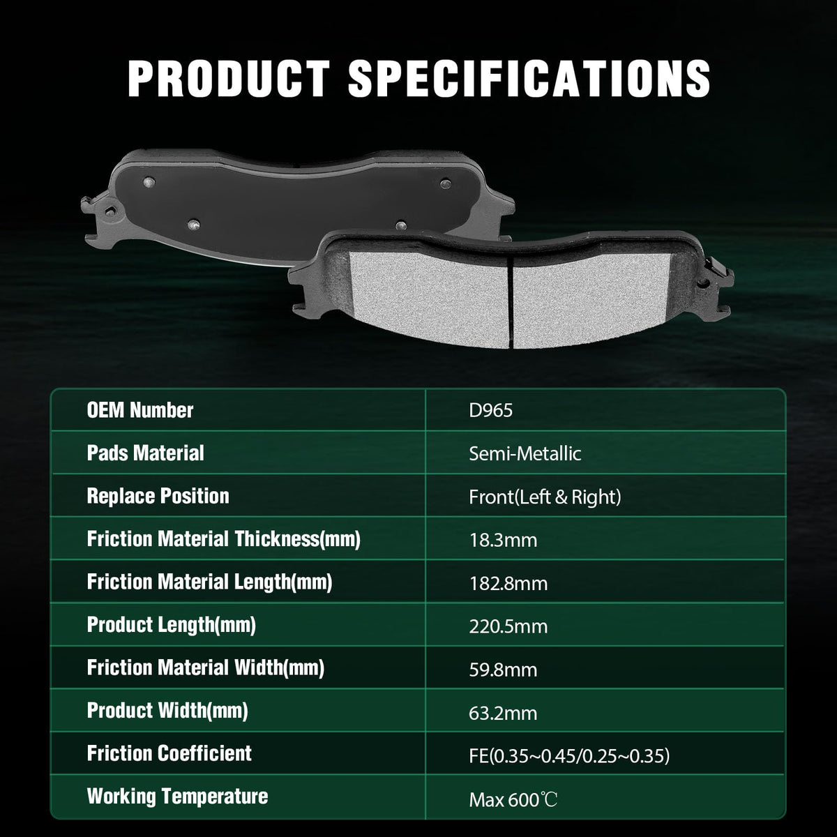 Automuto 4Pcs Front Semi-Metallic Disc Brake Pads Set D965 For Dodge Ram 1500 2006-2008,For Dodge Ram 2500 2003-2008,For Dodge R