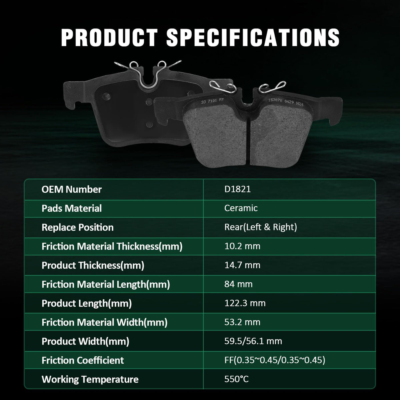 Automuto 4Pcs Rear Ceramic Brake Pads Set D1821 For Jaguar E-Pace/F-Pace/I-Pace/Xe/Xf,For Land Rover Discovery Sport/Range Rover