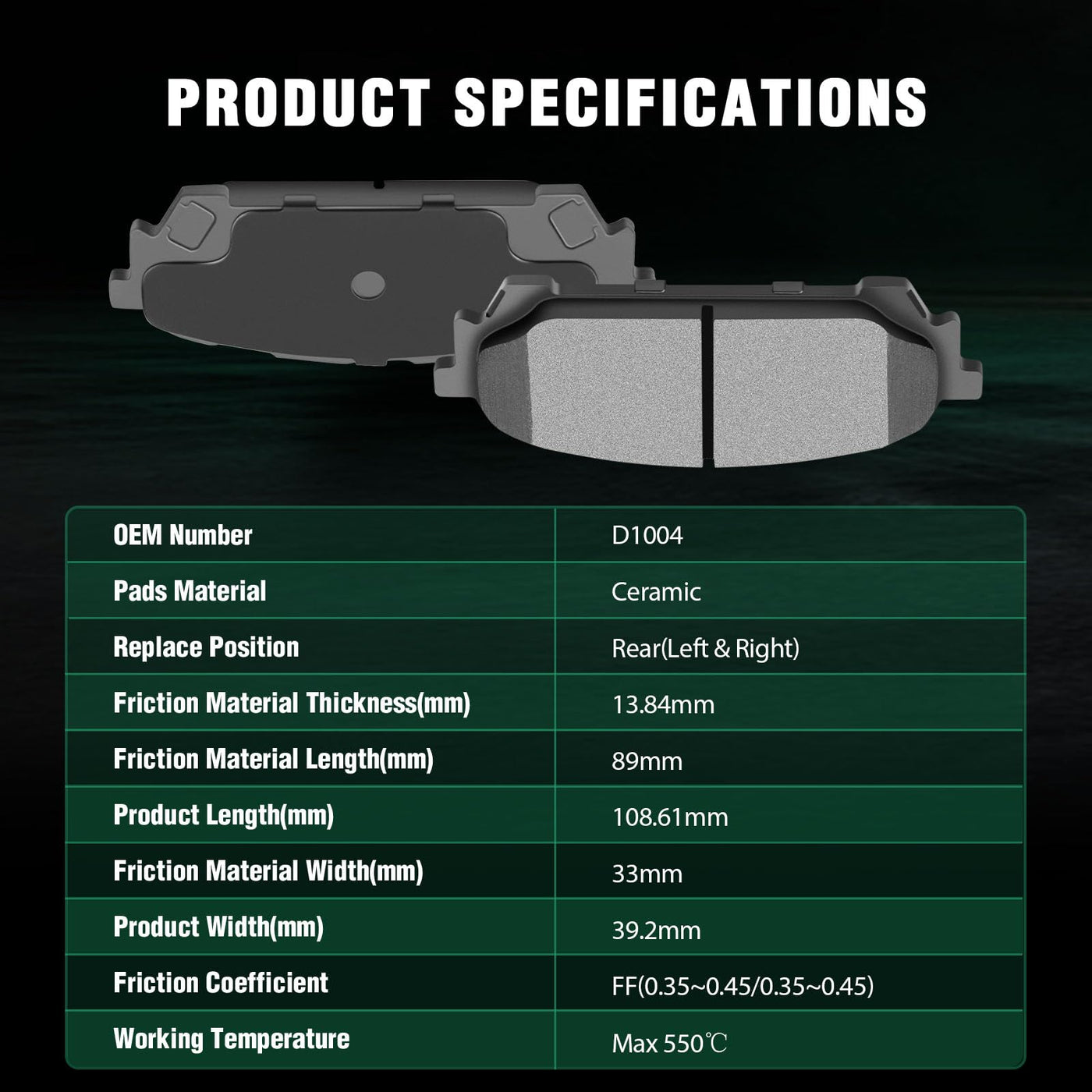 Automuto 4Pcs Rear Ceramic Disc Brake Pads Set D1004 For Saab 9-2X 2005-2006,For Subaru Impreza 2003-2007