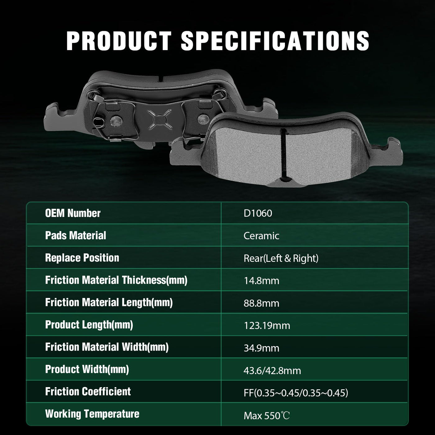 Automuto 4Pcs Rear Ceramic Disc Brake Pads Set D1060 For Mini Cooper 2002-2008
