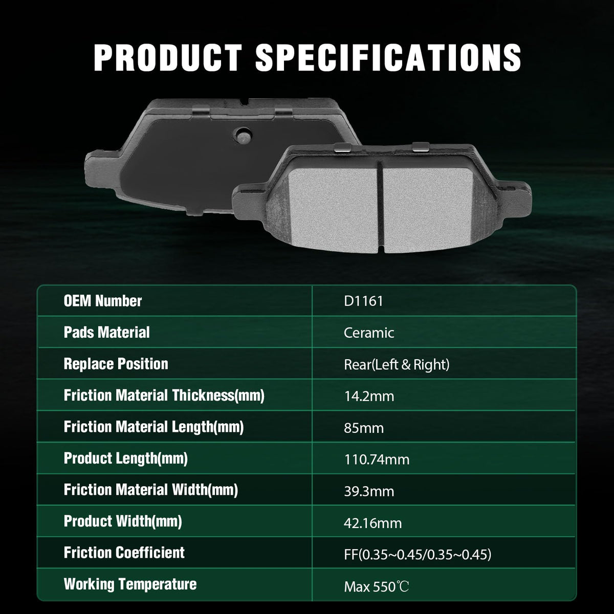 Automuto 4Pcs Rear Ceramic Disc Brake Pads Set D1161 For Ford For Fusion 2006-2012,For Lincoln Mkz 2007-2012,For Lincoln Zephyr