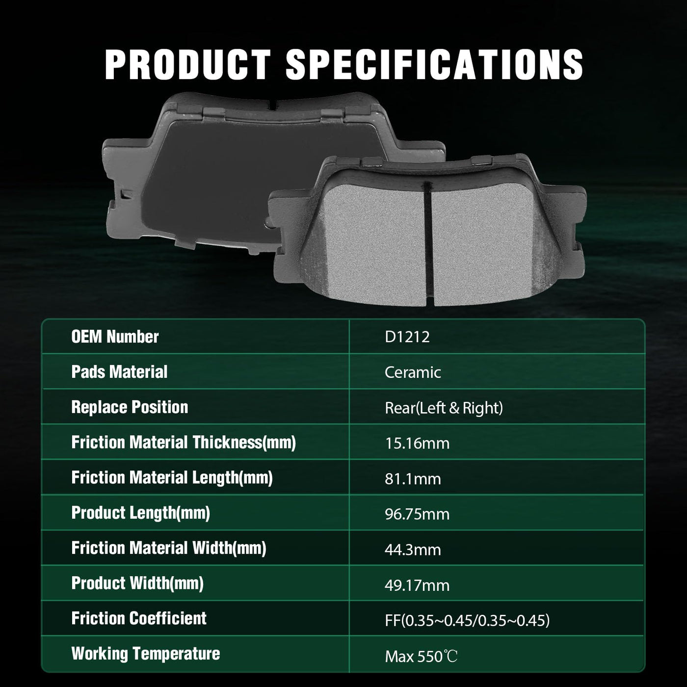 Automuto 4Pcs Rear Ceramic Disc Brake Pads Set D1212 For Lexus Es300H Es350 Hs250H For Pontiac Vibe For Toyota Avalon For Camry