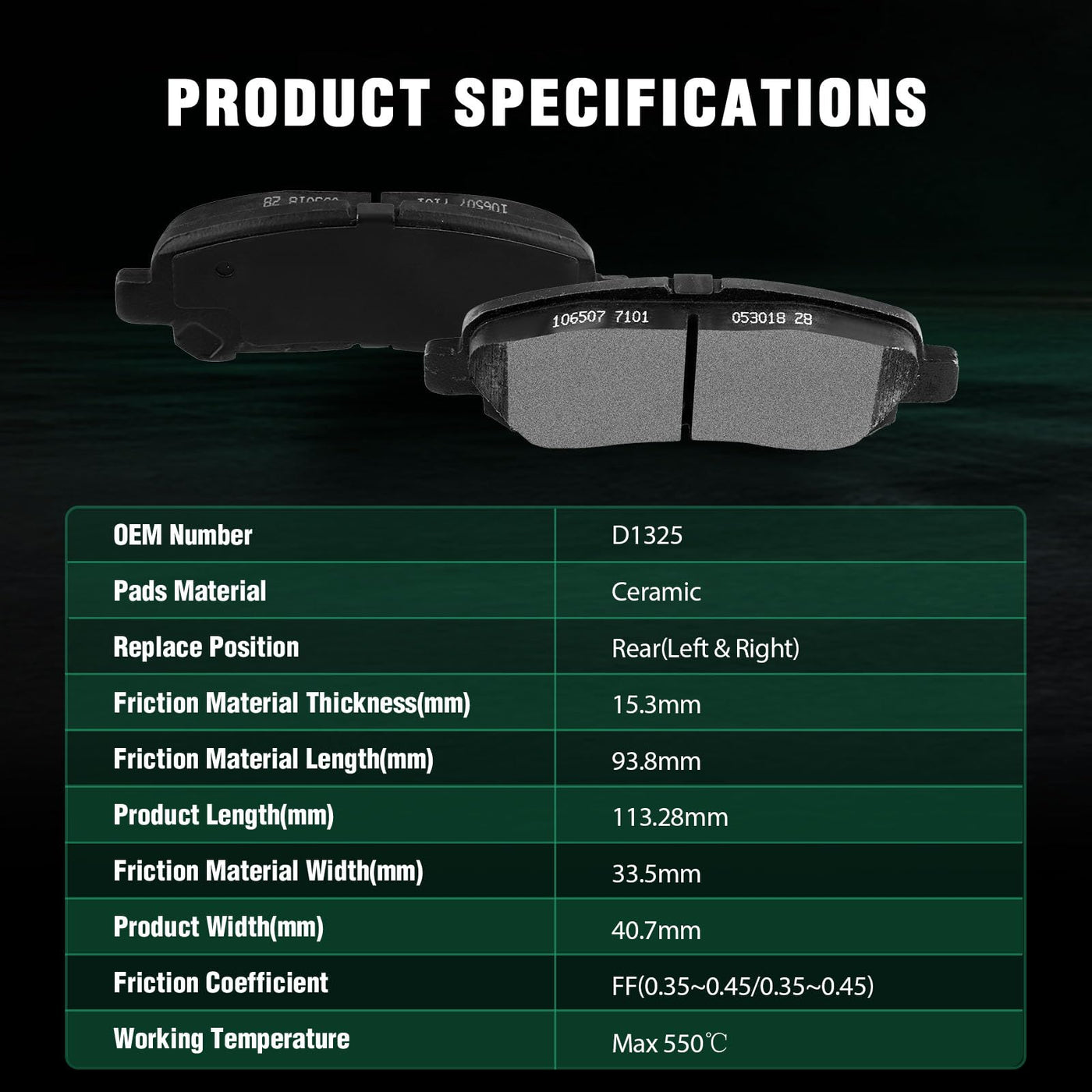 Fits:2009-2013 For Toyota For Highlander 2.7L2008-2013 For Toyota For Highlander 3.5LSpecifications:1)Placement on Vehicle: Rear Left and Right2)Brake Pad Material: Ceramic3)OEM Part Numbers: ATD1325C,D1325-8437Package Including:4*Ceramic Disc Brake Pads Set
