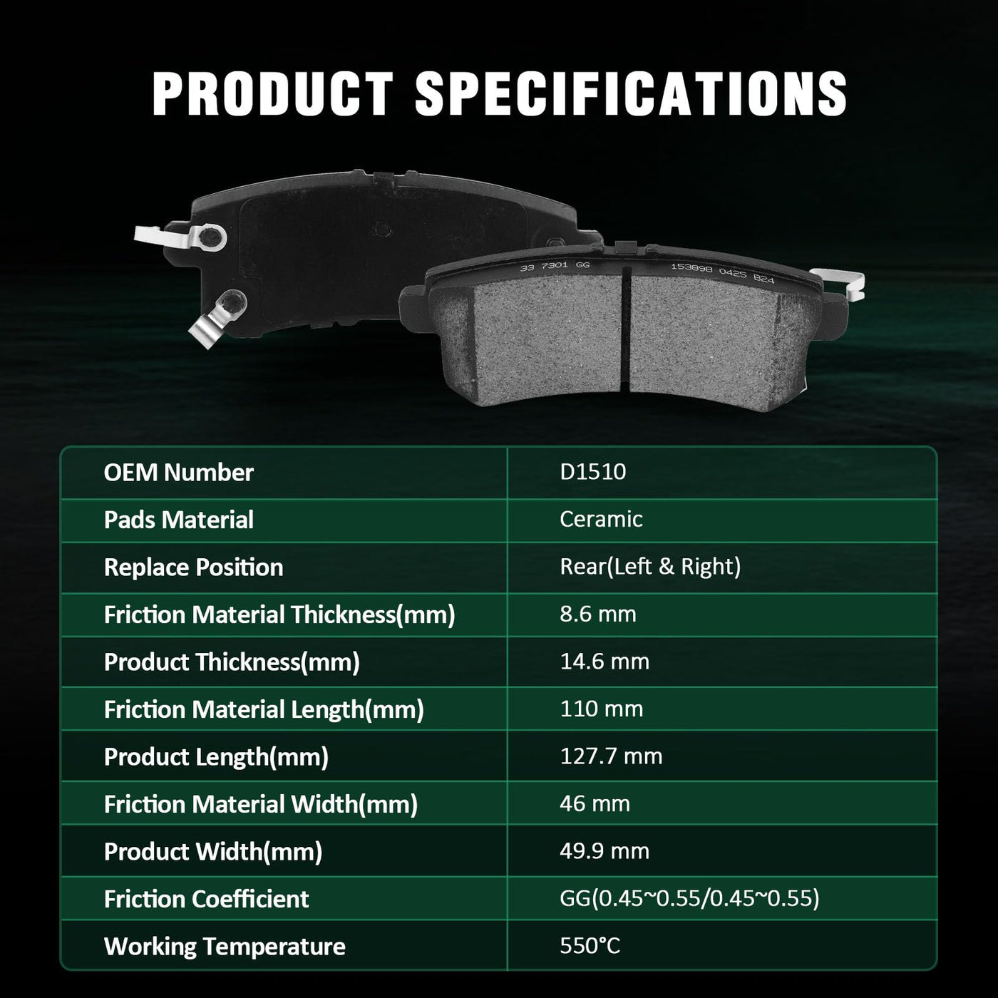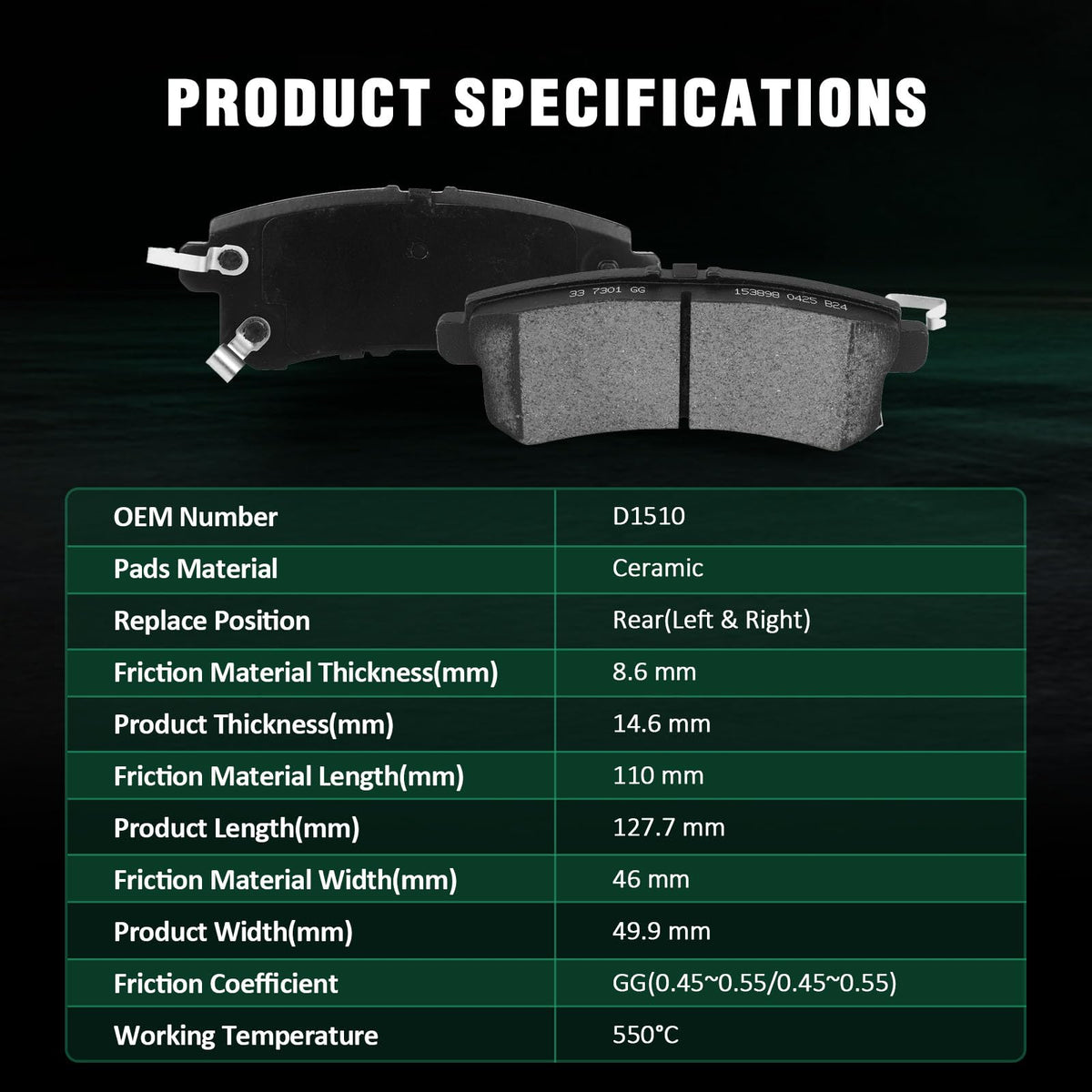 Automuto 4Pcs Rear Ceramic Disc Brake Pads Set D1510 For Infiniti Qx56 2011-2013,For Infiniti Qx80 2014-2017,For Nissan Armada 2
