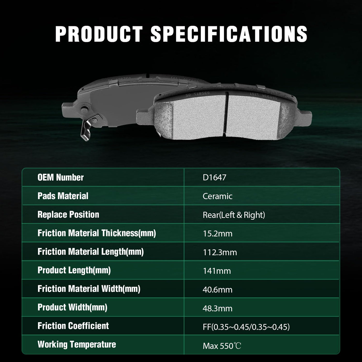Automuto 4Pcs Rear Ceramic Disc Brake Pads Set D1647 For Dodge Dart 2013-2016