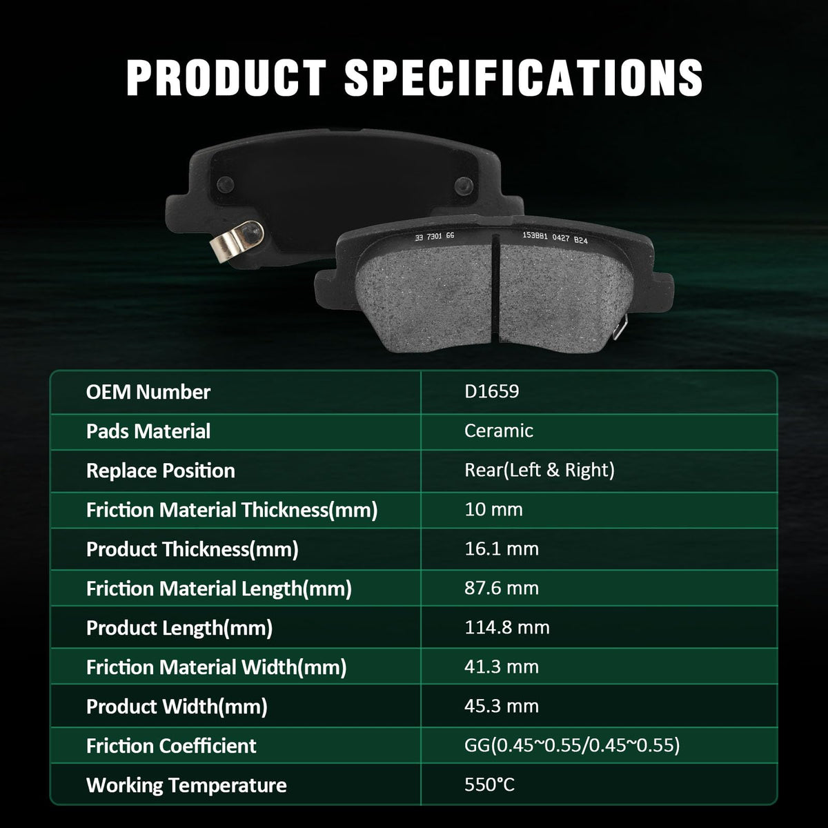 Automuto 4Pcs Rear Ceramic Disc Brake Pads Set D1659 For Cadillac Ats 2013-2018,For Cadillac Cts 2014-2019