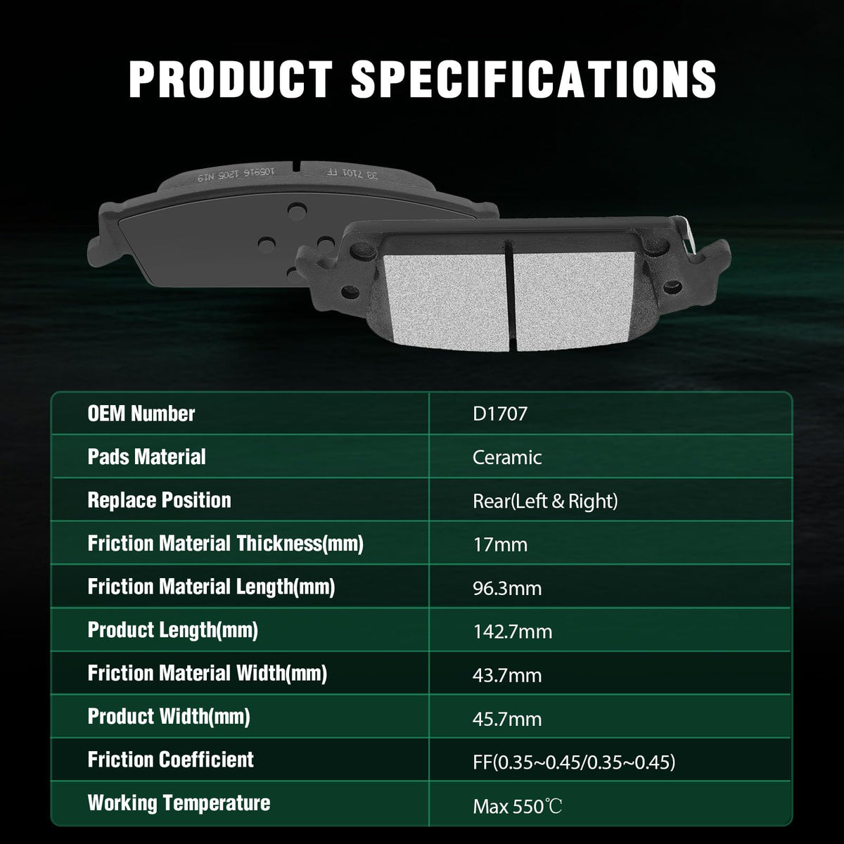 Automuto 4Pcs Rear Ceramic Disc Brake Pads Set D1707 For Cadillac Escalade Escalade Esv For Chevrolet Cheyenne Silverado 1500 Su