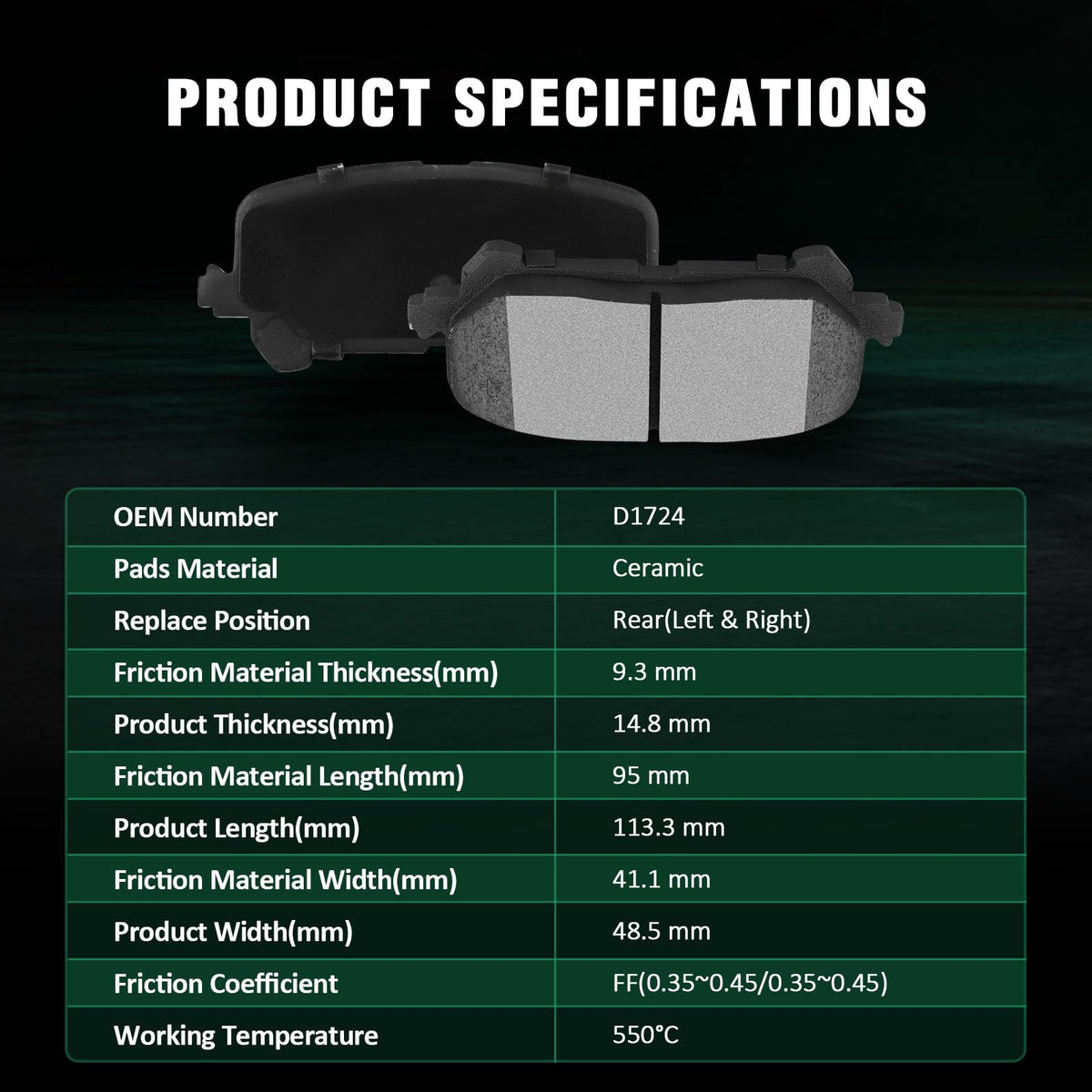 Automuto 4Pcs Rear Ceramic Disc Brake Pads Set D1724 For Acura Mdx 2014-2016, Honda Passport 2019-2021, Pilot 2016-2021, Ridgeli