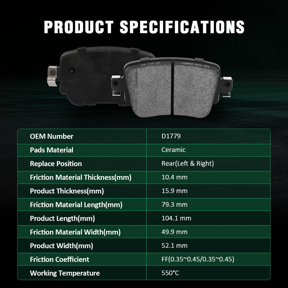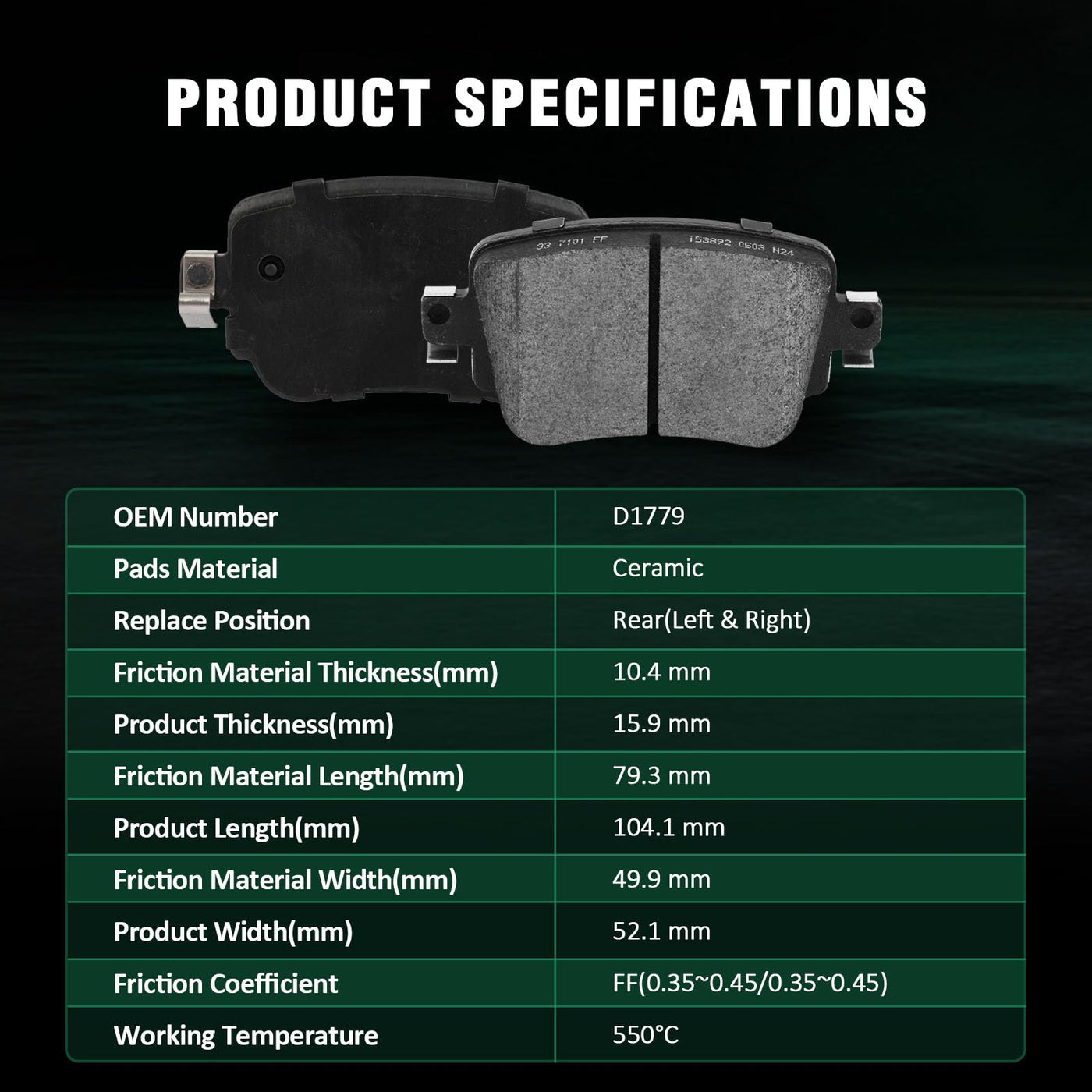 Automuto 4Pcs Rear Ceramic Disc Brake Pads Set D1779 For Audi Q3 16-18/Q3 Quattro 16-18,For Volkswagen For Golf 15-21/For Golf A