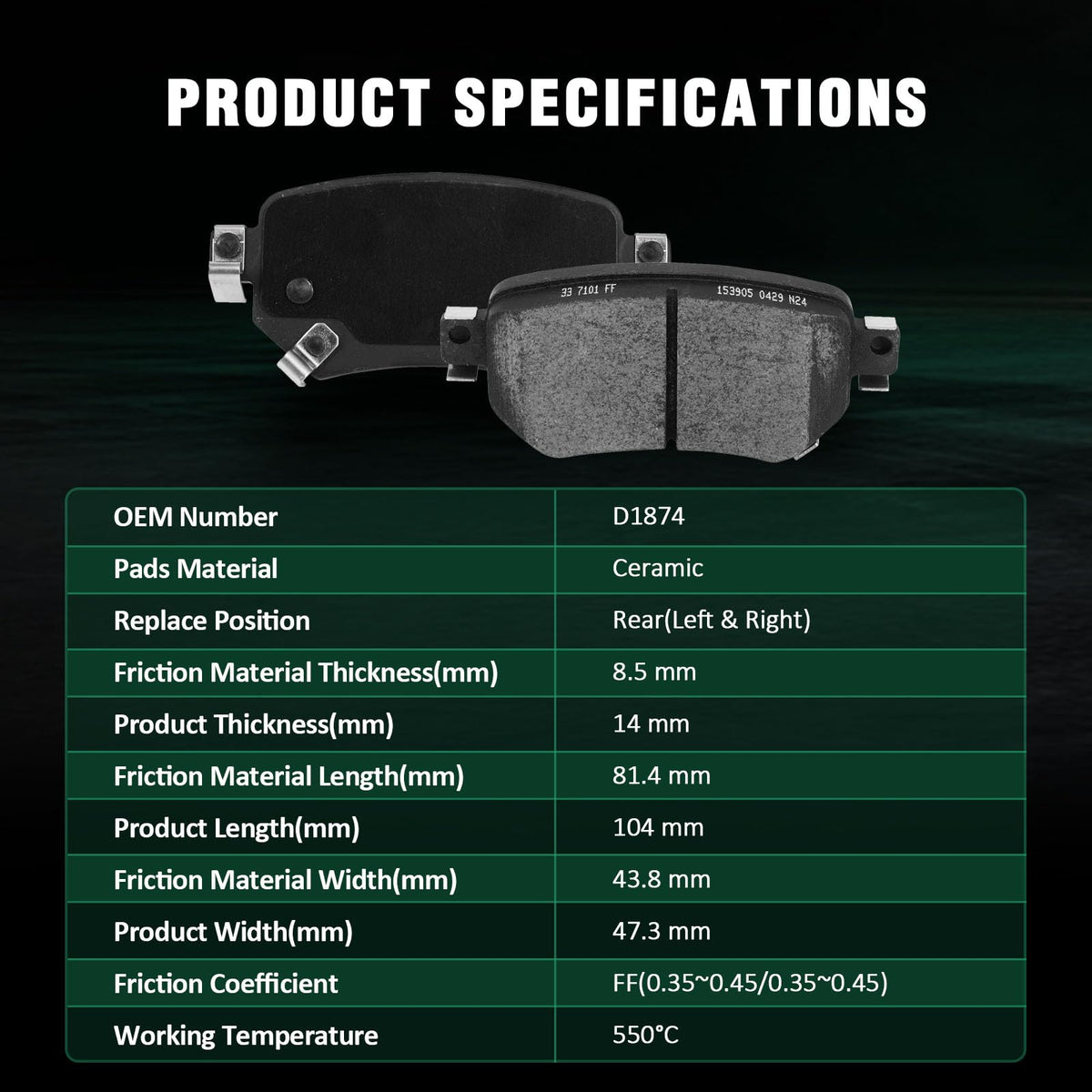 Automuto 4Pcs Rear Ceramic Disc Brake Pads Set D1874 For Mazda 6 2016-2021