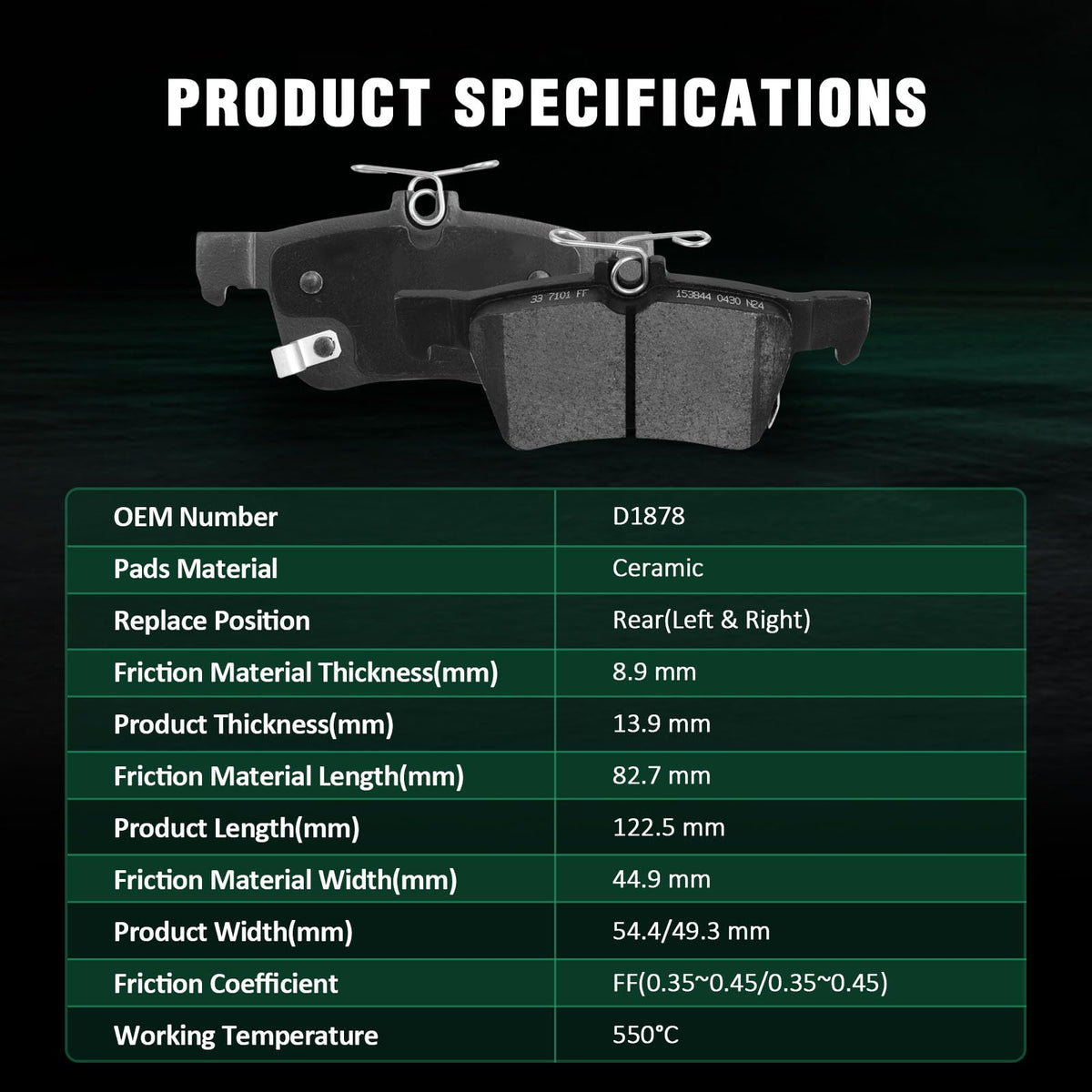 Automuto 4Pcs Rear Ceramic Disc Brake Pads Set D1878 For Acura Rdx 2019-2021,For Honda Civic 2016-2023