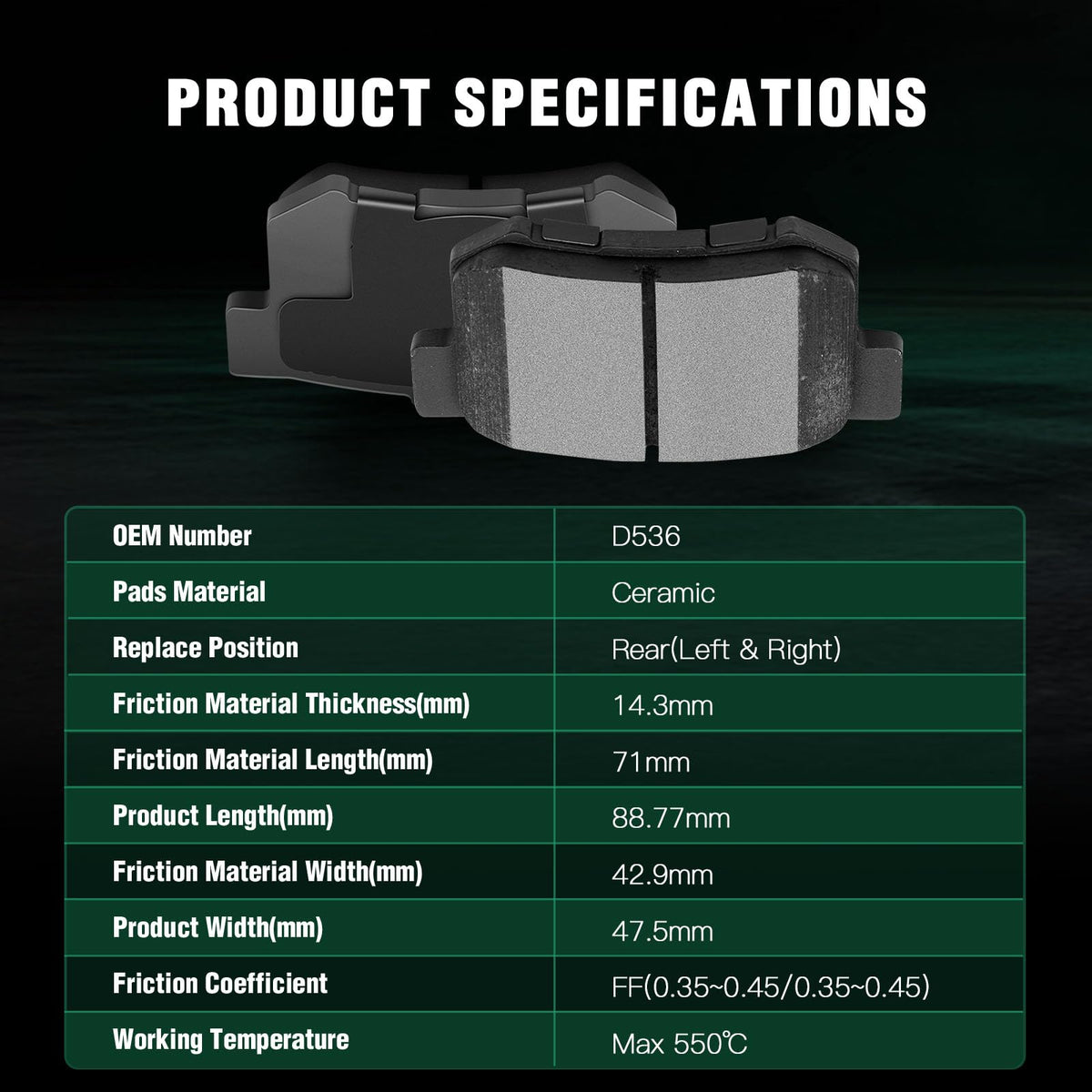 Automuto 4Pcs Rear Ceramic Disc Brake Pads Set D536 For Acura Cl Legend Rdx Rl Tl For Honda Cr-V Element Odyssey For Isuzu Oasis