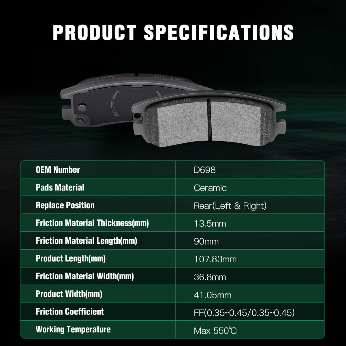 Automuto 4Pcs Rear Ceramic Disc Brake Pads Set D698 For Buick Allure Century Lacrosse Regal Rendezvous For Chevrolet Impala Mont