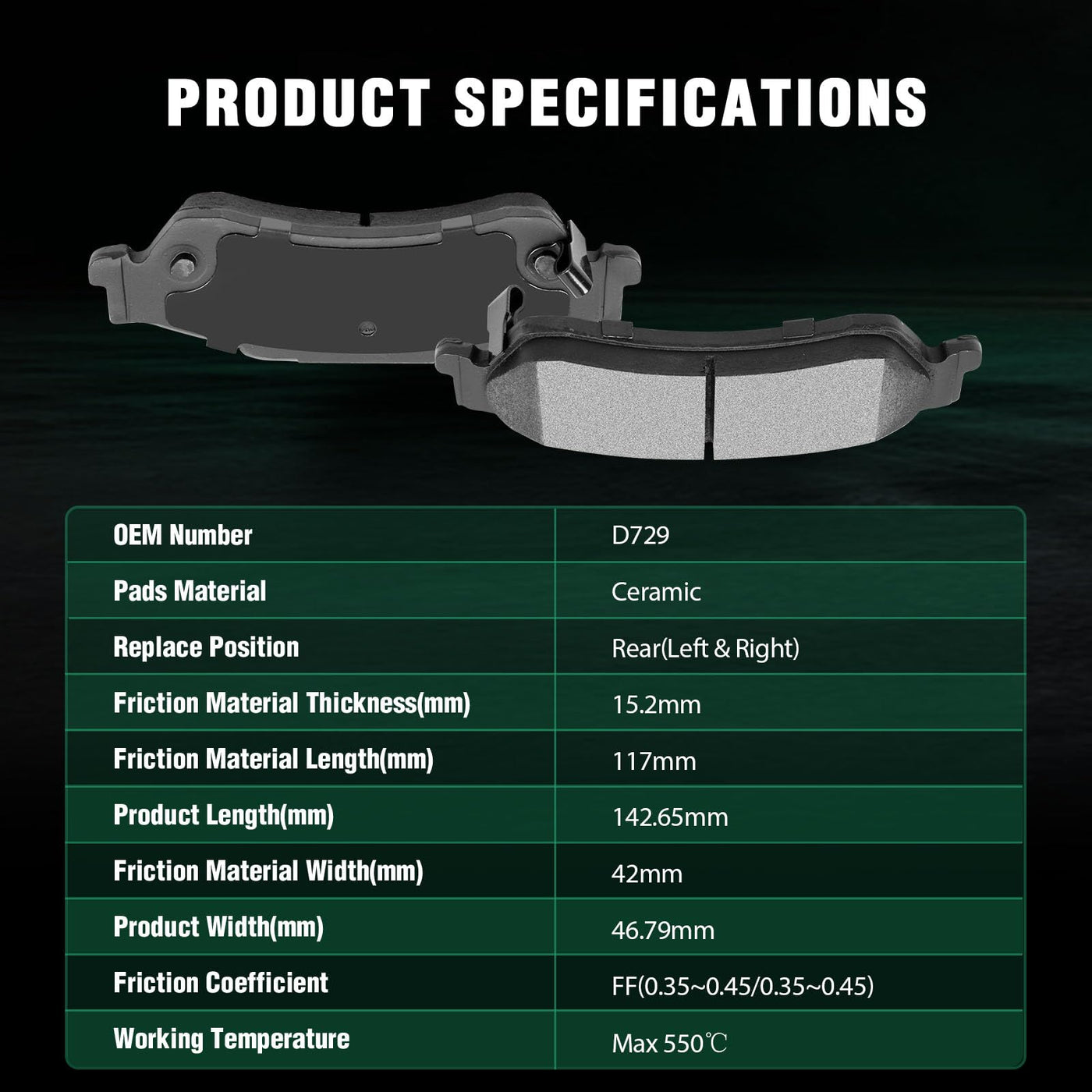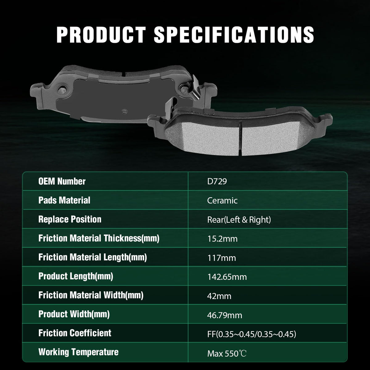 Fits:2002 For Chevrolet Blazer 4.2L1997-2005 For Chevrolet Blazer 4.3L1998-2003 For Chevrolet S10 2.2L1998-2004 For Chevrolet S10 4.3L1997-2005 For GMC Jimmy 4.3L1998-2003 For GMC Sonoma 2.2L1998-2004 For GMC Sonoma 4.3L1998-2000 For Isuzu Hombre 2.2L1998-2000 For Isuzu Hombre 4.3L1997-2001 For Oldsmobile Bravada 4.3LSpecifications:1)Placement on Vehicle: Rear Left and Right2)Brake Pad Material: Ceramic3)OEM Part Numbers: ATD729C,D729-7596Package Including:4*Ceramic Disc Brake Pads Set