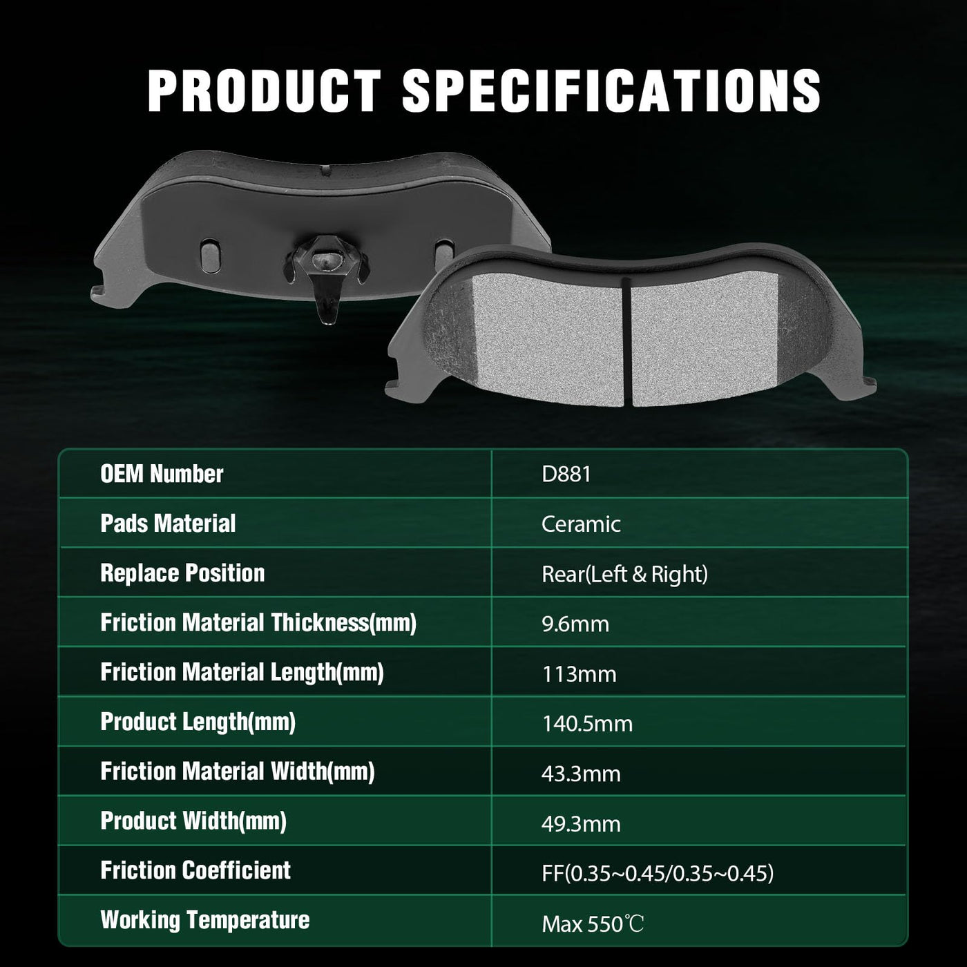 Automuto 4Pcs Rear Ceramic Disc Brake Pads Set D881 For Ford For Explorer 2002-2005,For Mercury Mountaineer 2002-2005