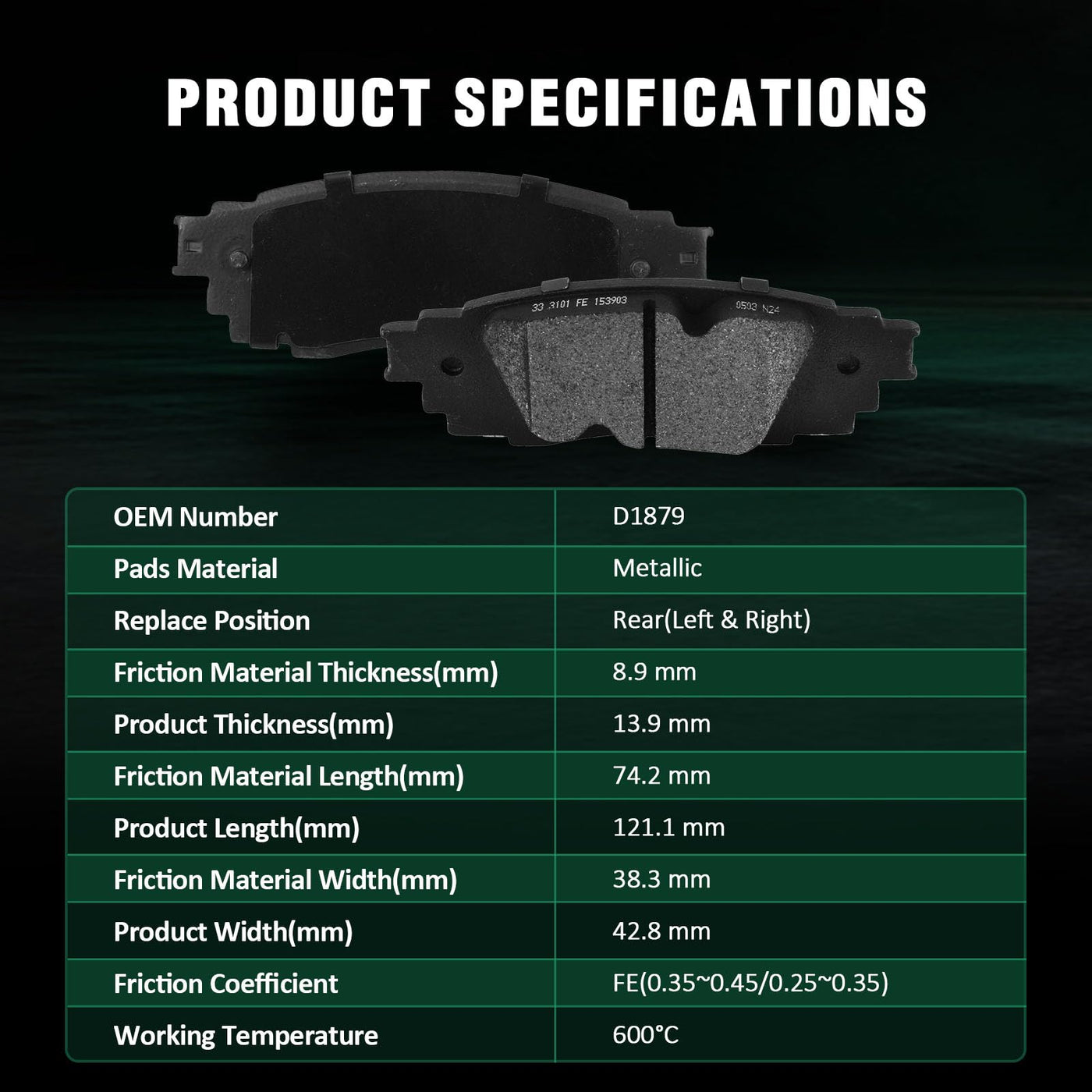 Automuto 4Pcs Rear Metallic Disc Brake Pads Set D1879 For Lexus Es250 21-22/Rx350 16-22/Rx350L 18-22/Rx450H 16-22/X450Hl 18-22/U