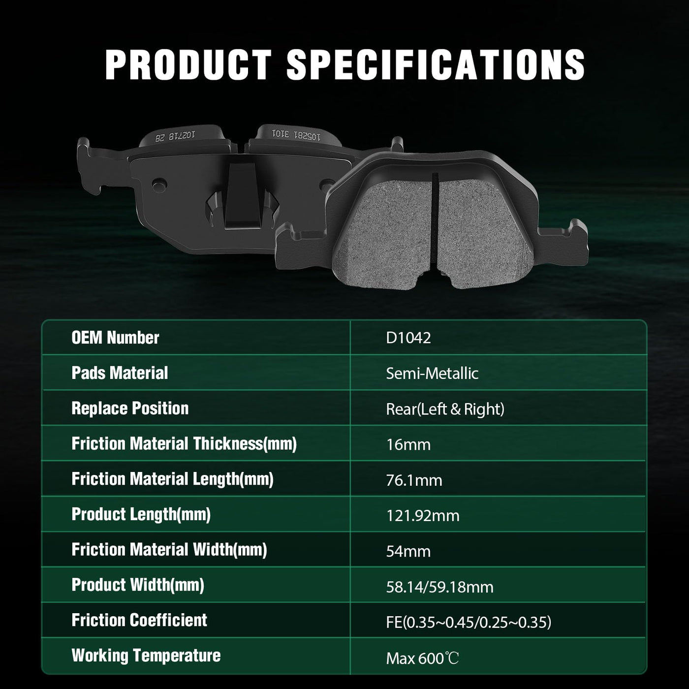 Automuto 4Pcs Rear Semi-Metallic Disc Brake Pads Set D1042 For Bmw X5 X6