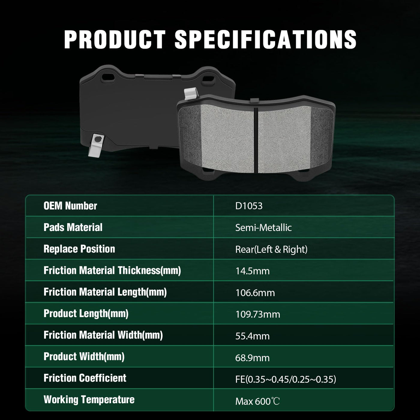 Automuto 4Pcs Rear Semi-Metallic Disc Brake Pads Set D1053 For Cadillac Cts Sts For Chevrolet Camaro Ss For Chrysler 300 For Dod
