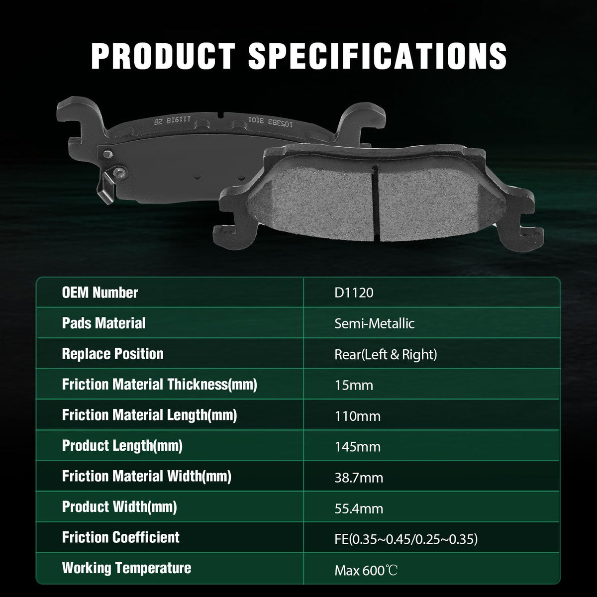 Automuto 4Pcs Rear Semi-Metallic Disc Brake Pads Set D1120 For Hummer H3 2006-2010,For Hummer H3T 2009-2010