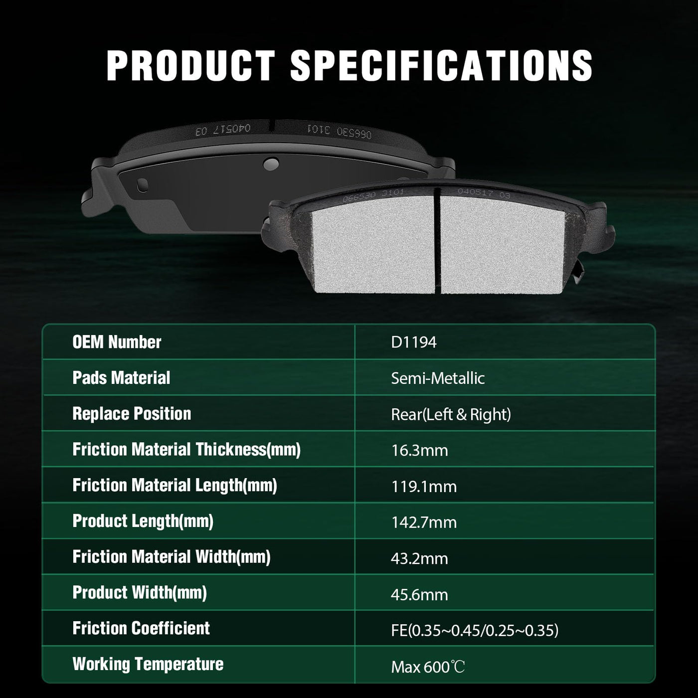 Automuto 4Pcs Rear Semi-Metallic Disc Brake Pads Set D1194 For Cadillac Escalade Escalade Esv Escalade Ext For Chevrolet Avalanc