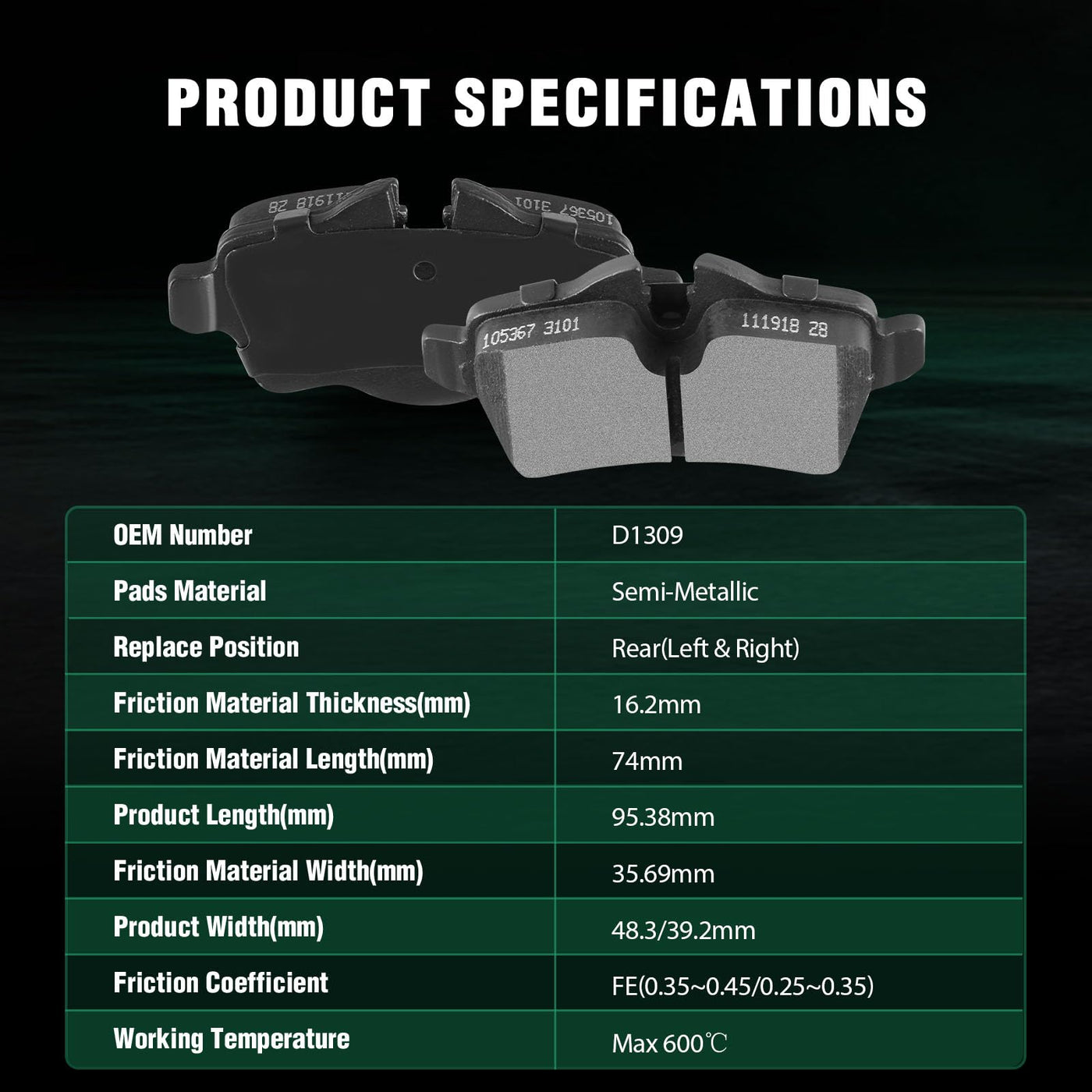 Automuto 4Pcs Rear Semi-Metallic Disc Brake Pads Set D1309 For Mini Cooper 2007-2015