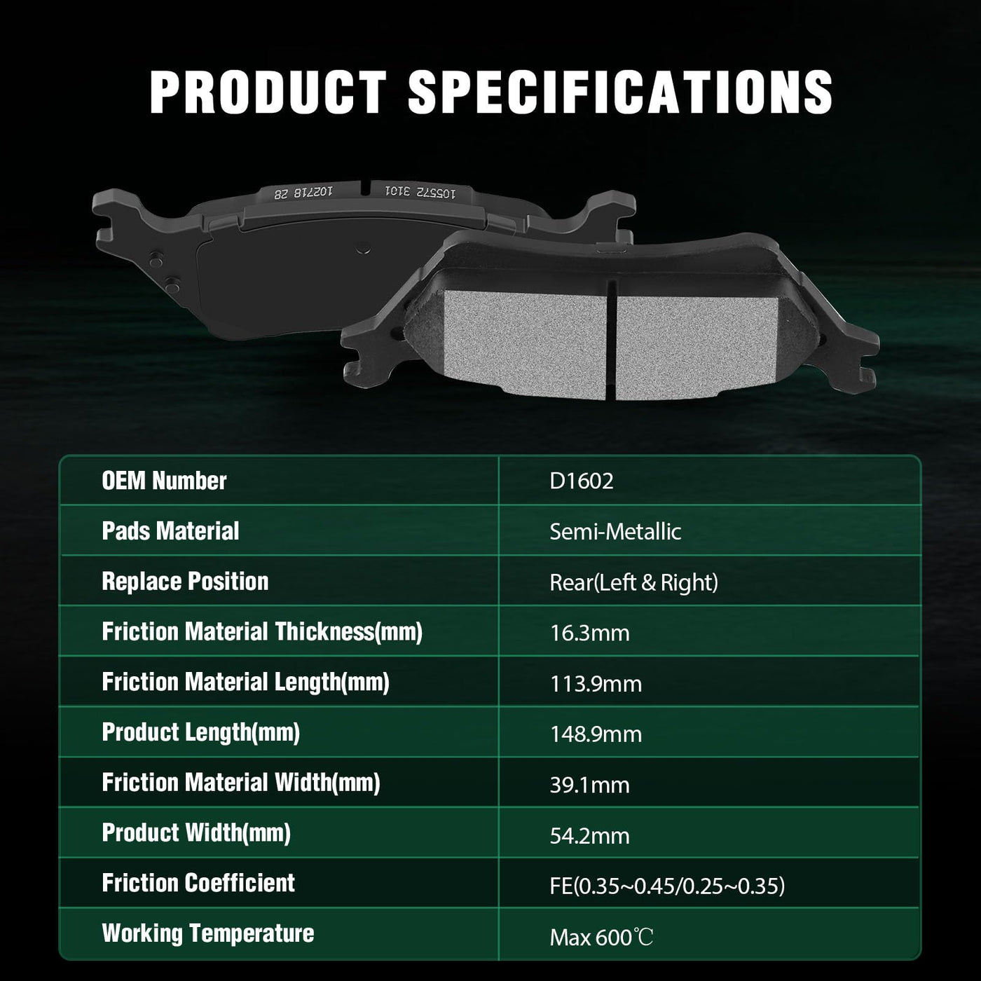 Automuto 4Pcs Rear Semi-Metallic Disc Brake Pads Set D1602 For Ford For F-150 2012-2020