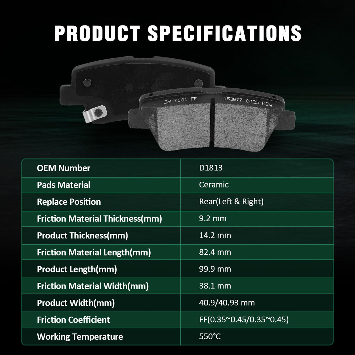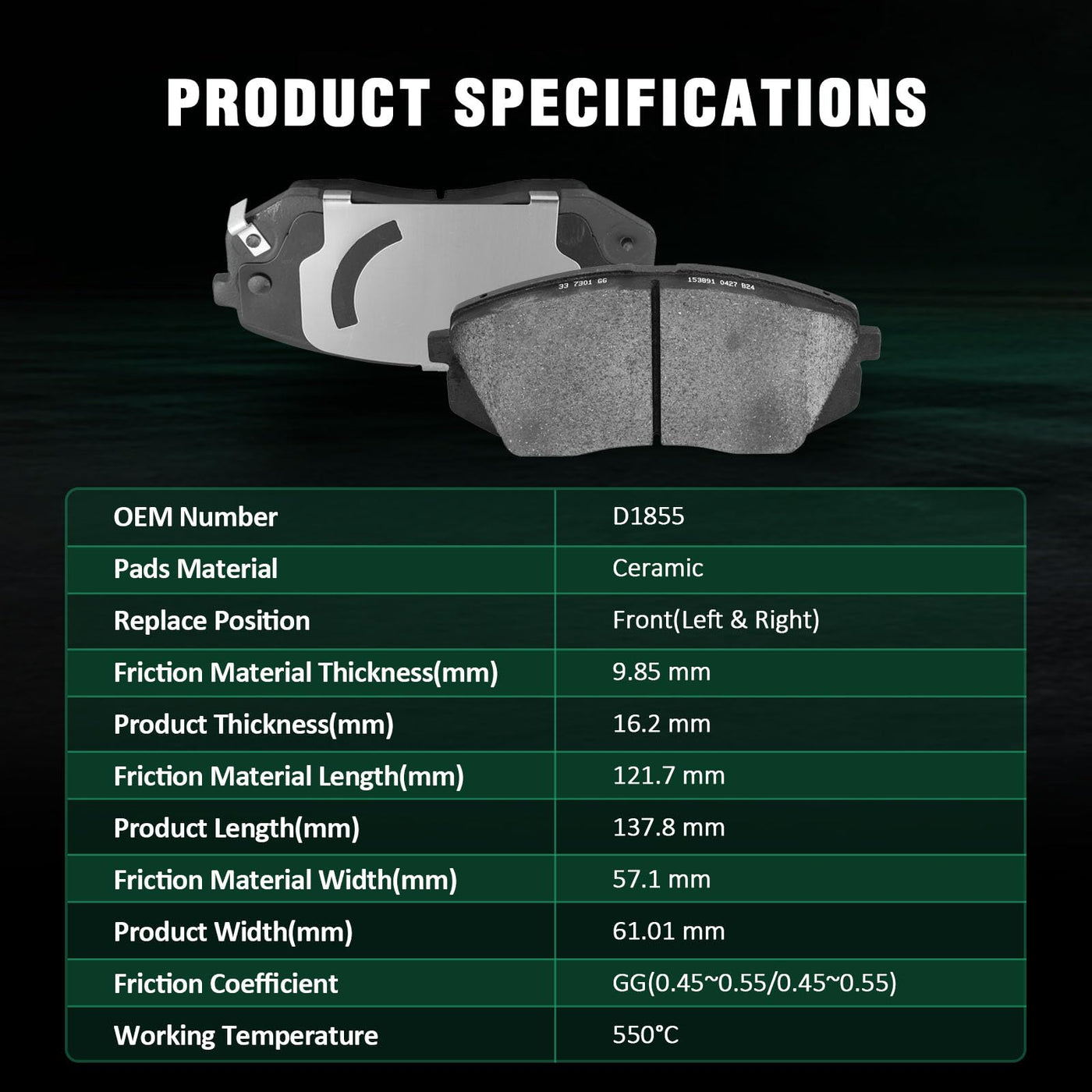 Fits:For Hyundai Elantra GT 2018-2020For Hyundai Kona 2022For Hyundai Veloster 2019-2021For Kia Forte 2021-2022For Kia Forte5 2020-2022For Kia Optima 2016-2020For Kia Soul 2017-2018For Kia Soul EV 2017-2018Specifications:1)Placement on Vehicle:Front & Rear2)Brake Pad Material:Ceramic-Front Left & RightCeramic-Rear Left & Right3)OEM Part Numbers:D1855-8614-Front Left & RightD1813-8428-Rear Left & RightPackage Including:8*Brake Pads Set