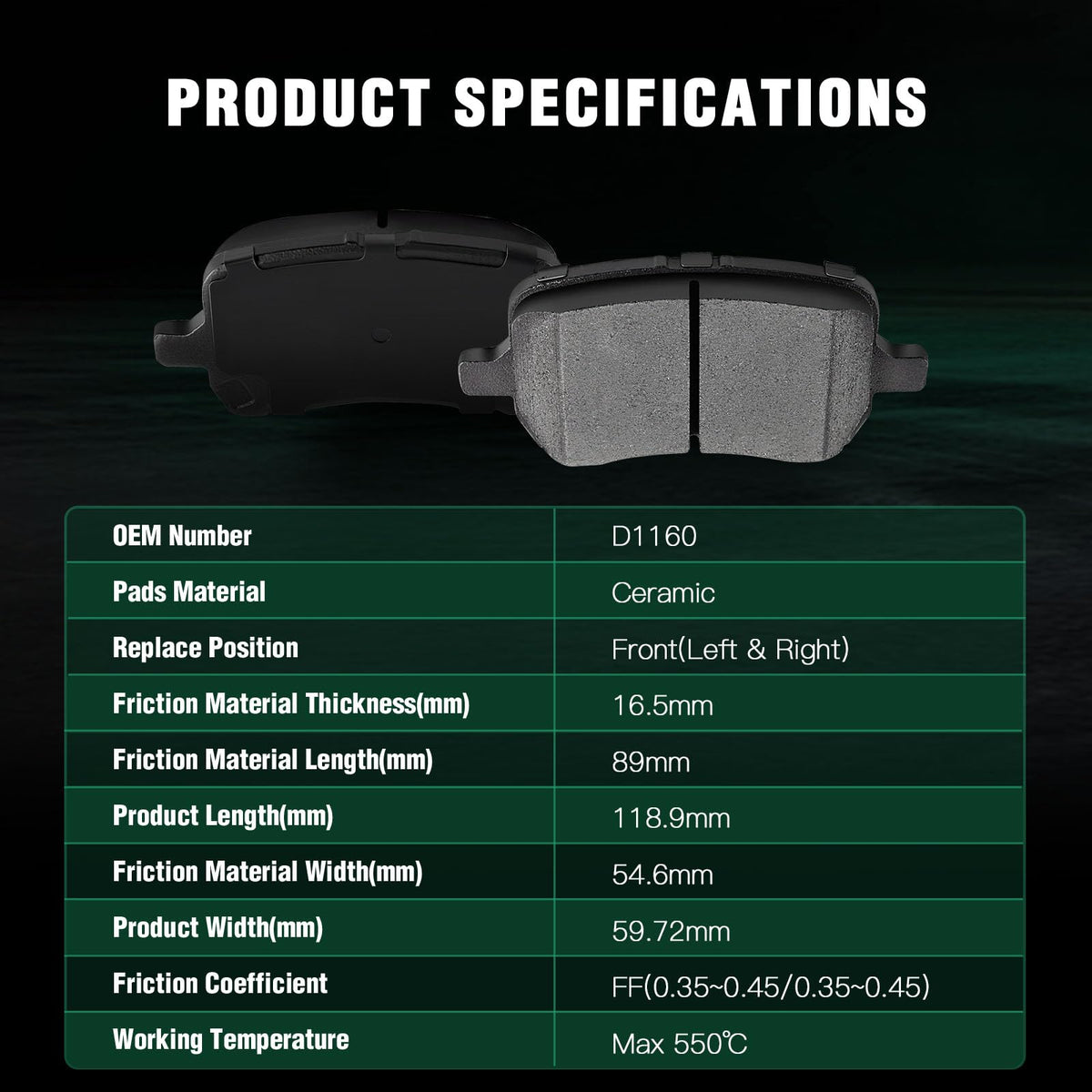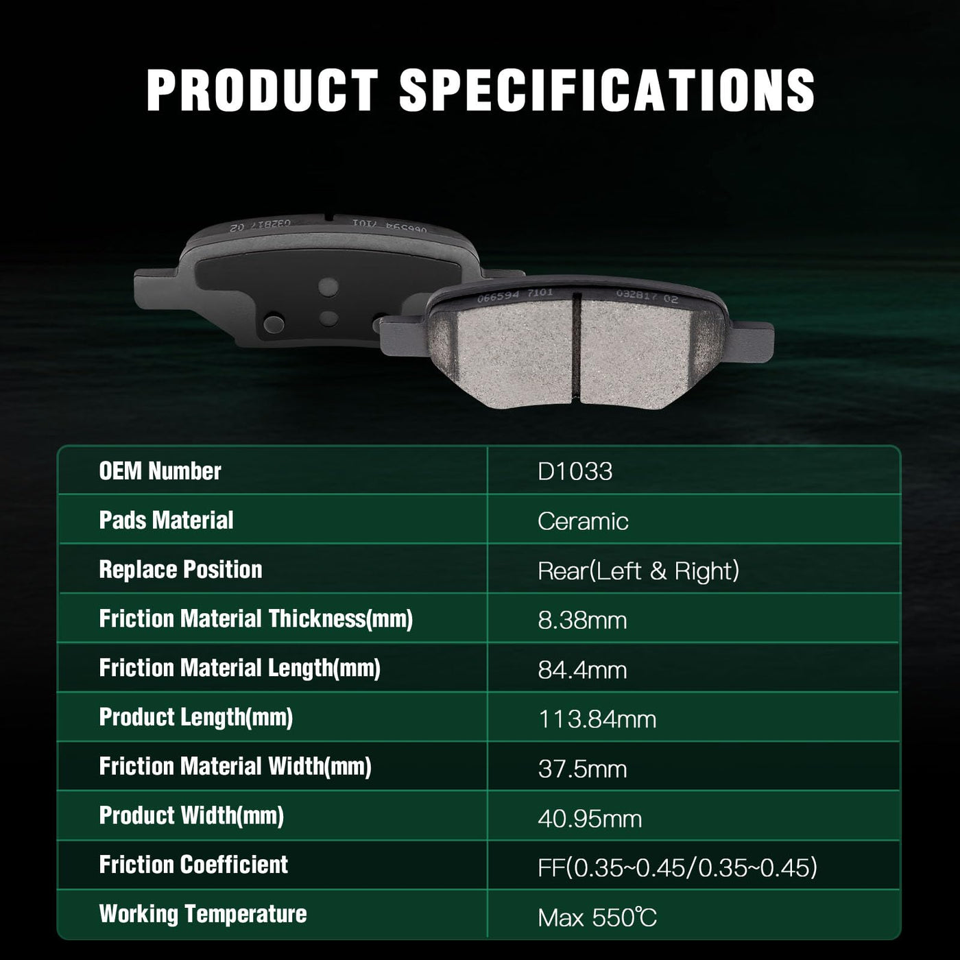 Automuto 8Pcs Front & Rear Ceramic Disc Brake Pads Set D1033 D1160 For Chevry Cobalt 08,For Chevrolet For Malibu 04-12,For Ponti
