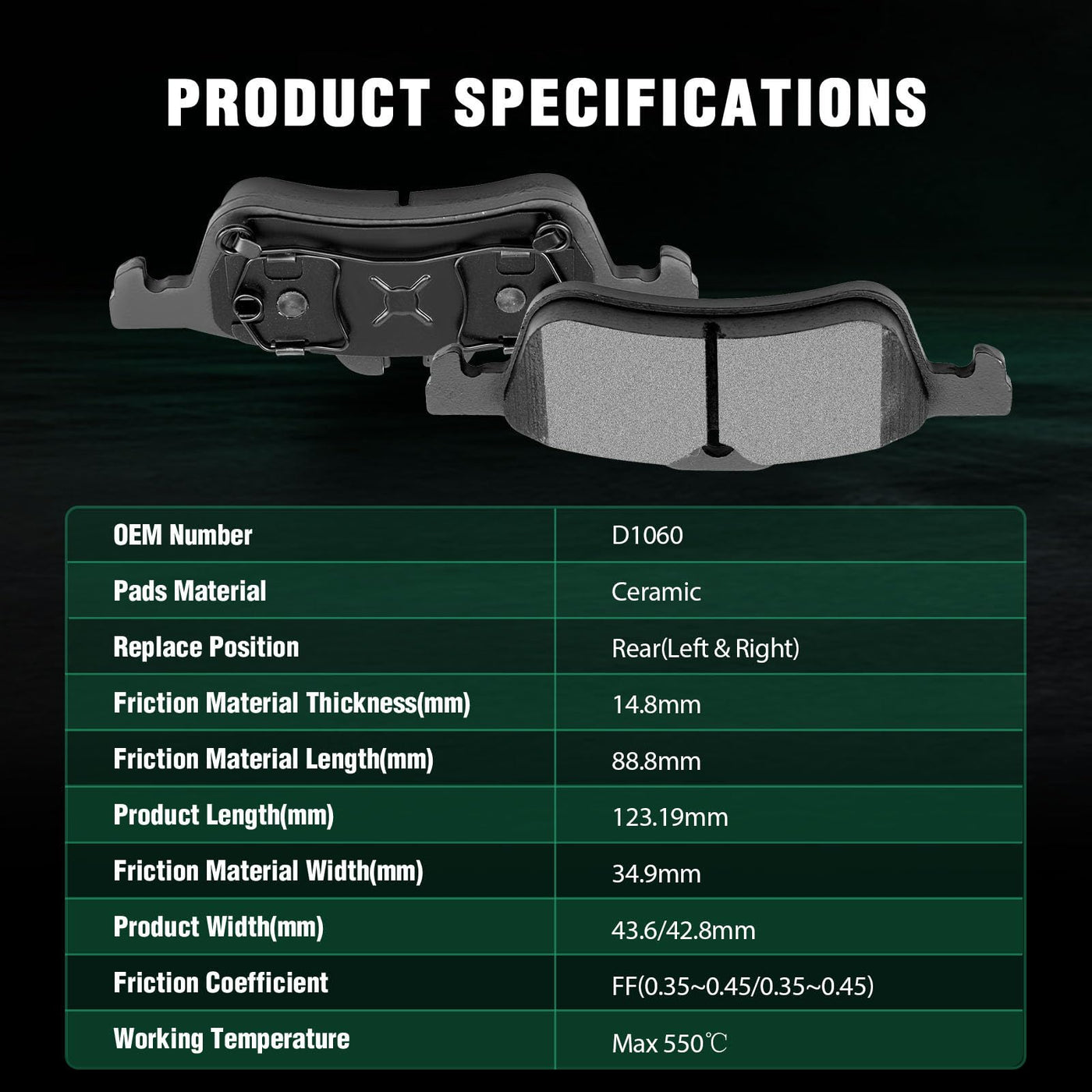 Automuto 8Pcs Front & Rear Ceramic Disc Brake Pads Set D1060 D939 For Mini Cooper 2002-2008