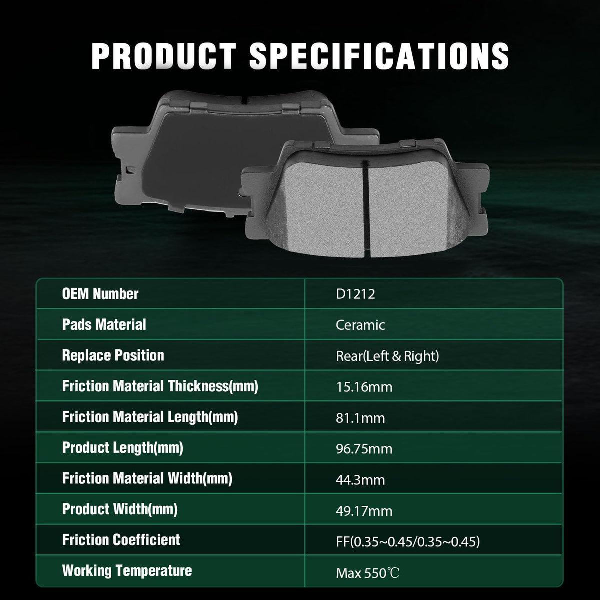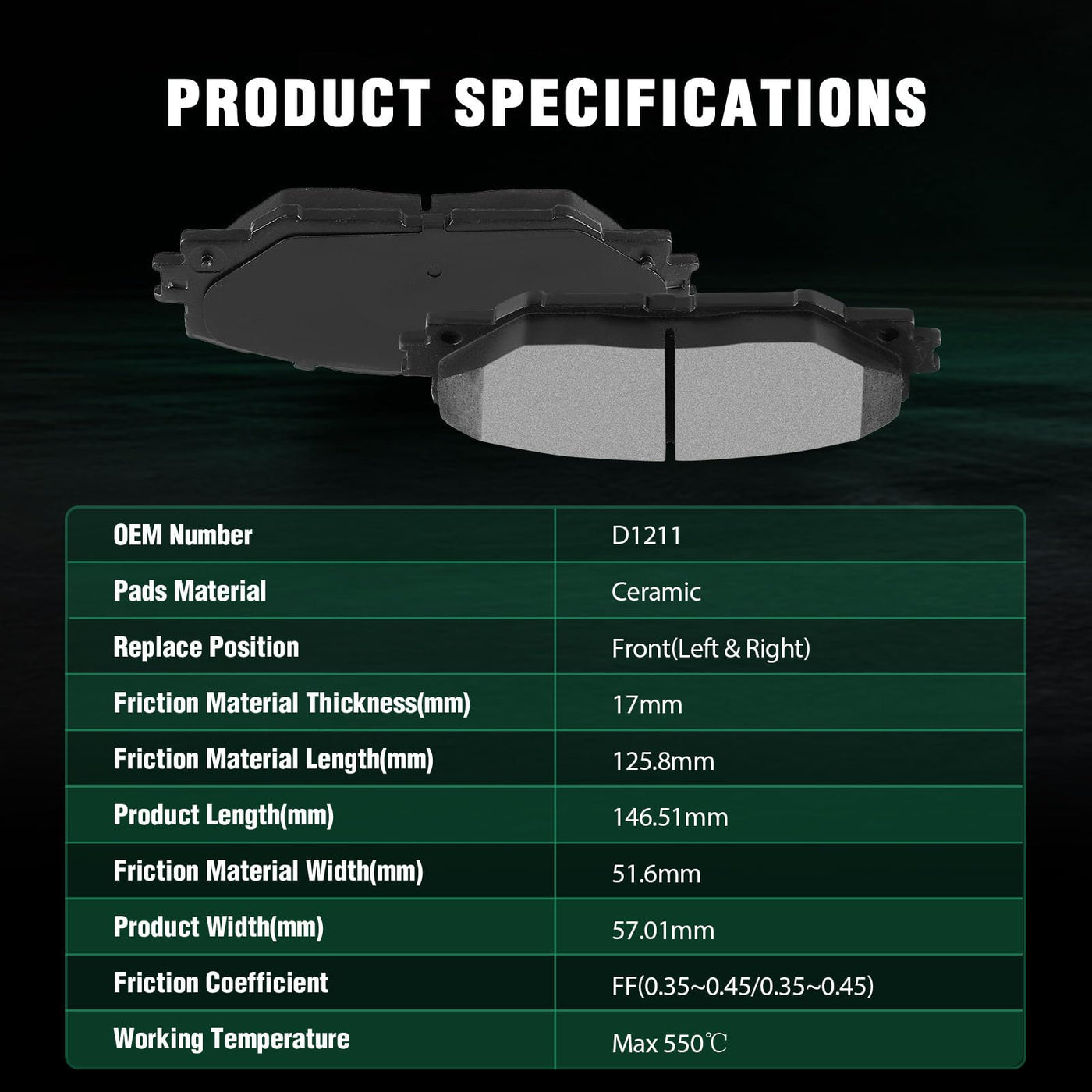 Automuto 8Pcs Front & Rear Ceramic Disc Brake Pads Set D1212 D1211 For Pontiac Vibe 2009-2010,For Toyota Matrix 2009-2013,For To